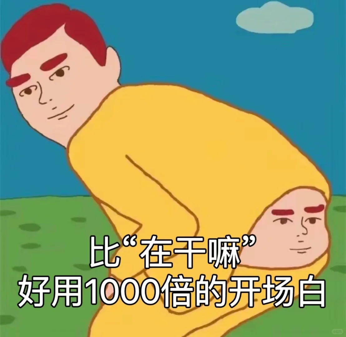 “V💌sousuo小由话术”\n搞笑型:\n1.很好,又是这个时间,有趣的我又出现了\n2.走过场还是直接在一起\n3.是谁?在敲打我的聊天窗口\n3.你好久没理我了,麻烦你把手上的事放一放,来敷衍我一下\n4.震惊,某女子在太阳刚起,闹铃刚响的时候,就给你发信息!\n5.新的一天要从我的早安开始\n6.让我想想,今天要用什么方式闪亮登场,才能让你记住这么闪亮的我\n \n撩人型:\n1朕来宠你喽\n2.方便发个位置么?让我看下我的心跑哪去了?\n3.唉!到底要换个什么型号的手机,才能收到你的信息呢?\n4.我都主动想你了,你就不能主动给我发消息嘛?\n5.我的心跑到你那里去了,帮我把它送回来!\n \n调皮型:\n1.我主动想你了,你不能主动发消息嘛?\n2.我已经过了隔离期,你可以放心和我聊天了\n3.今天手机好像坏了,拦都拦不住,要给你打招呼\n4.叮~你的公主己发件,请尽快取件\n5.尊贵的会员客户已上线,快来和我聊天吧\n6.请做好准备,马上有一件大事发生聊天记录加载中.25%.60%..75%..加载完成\n \n通用型:\n1.我刚干了一件特别尴的事\n2.你喜欢现在的工作吗\n3.我发现你的秘密了\n4.新上的xx电影你看了没\n5.你猜我为什么喜欢找你聊天\n#搞笑文案 #发疯文学 #聊天技巧 #高情商聊天 #聊天记录 #话术 #幽默 #聊天 #恋爱 #开场白 #今日营业 #每日文案#小由话术
