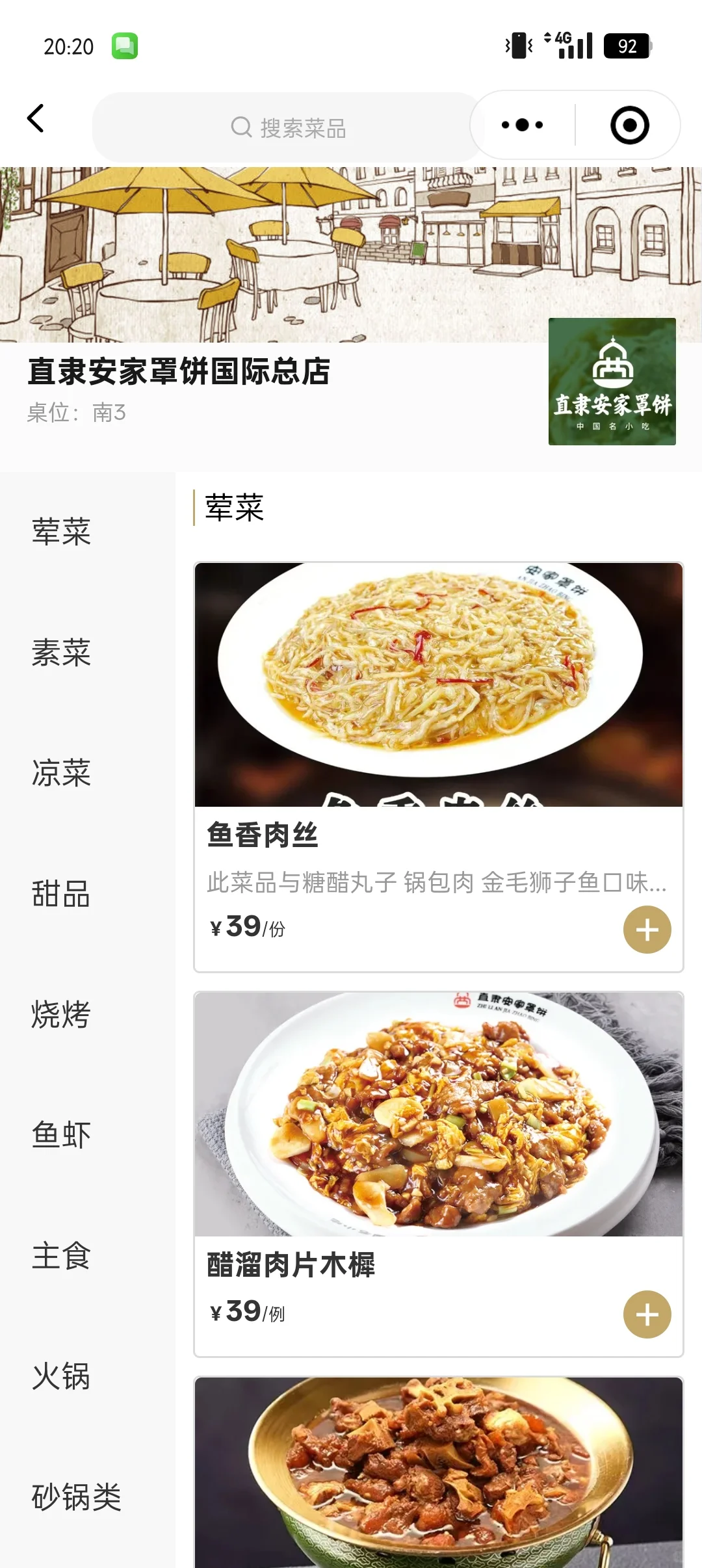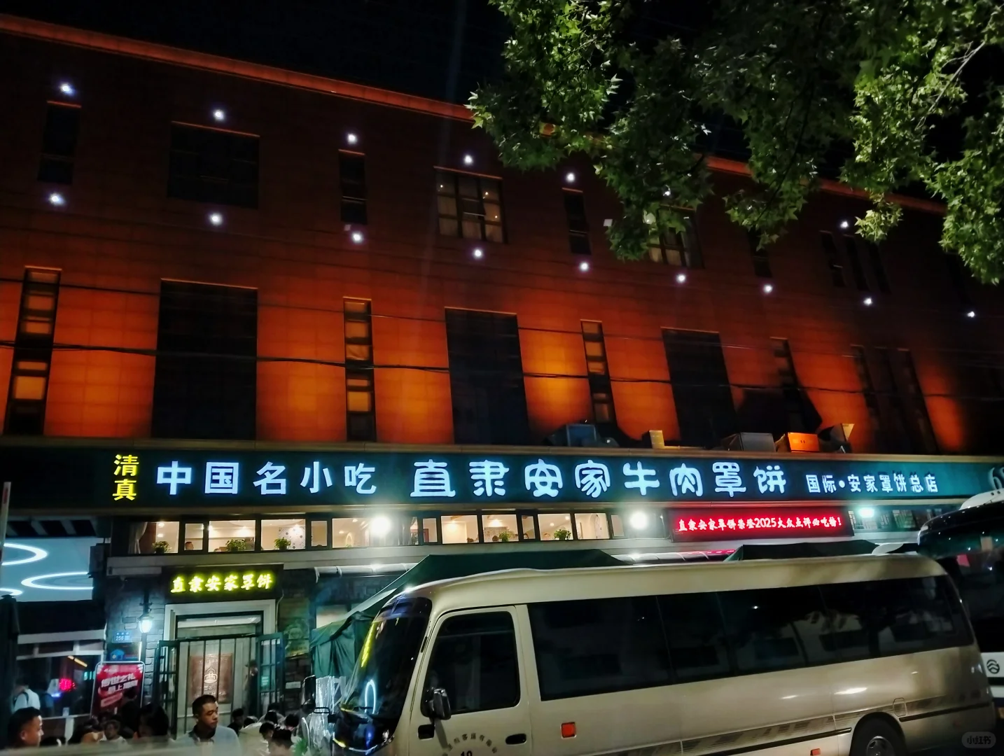 早就被央视牛肉罩饼的宣传深深吸引,国庆假期第一天由于高速堵车,到保定市区已经很晚了,毅然决然的选择这家 央视拍摄的店,直隶安家罩饼总店。\n如果假期来肯定是排队 人山人海。可以选择扫码取号。不过我感觉很快。\n点菜小程序上还贴心的备注了 鱼香肉丝 丸子 还有个鱼味道几乎差不多。\n1.素颜鱼香肉丝 💰39\n感觉酸甜适中,可口。不会太酸 或者太甜。 2.总督豆腐 💰 忘了,不贵。 这个菜比较普通吧 无功无过\n3. 牛肉罩饼 💰牛肉的量数不同价钱不同 他们家最好 的点是可以续饼 我点了二罩三 然后感觉没吃够 我又续了4两饼。好吃,我非常喜欢😍。撑到怀疑人生 。这也是吃过别人家以后 回来总结的, 还是觉得这家好吃。 别的我没有点,人多可以多点几个菜,我的主要目的是罩饼 所以就点的比较少。本想吃麻仁鸡蛋,但是感觉吃不下了。 大家可以点了尝尝,他们家的菜 我觉得口味还是可以的。不会很咸 也不是确黑的样子。 我个人觉得不错。#牛肉罩饼 #保定美食