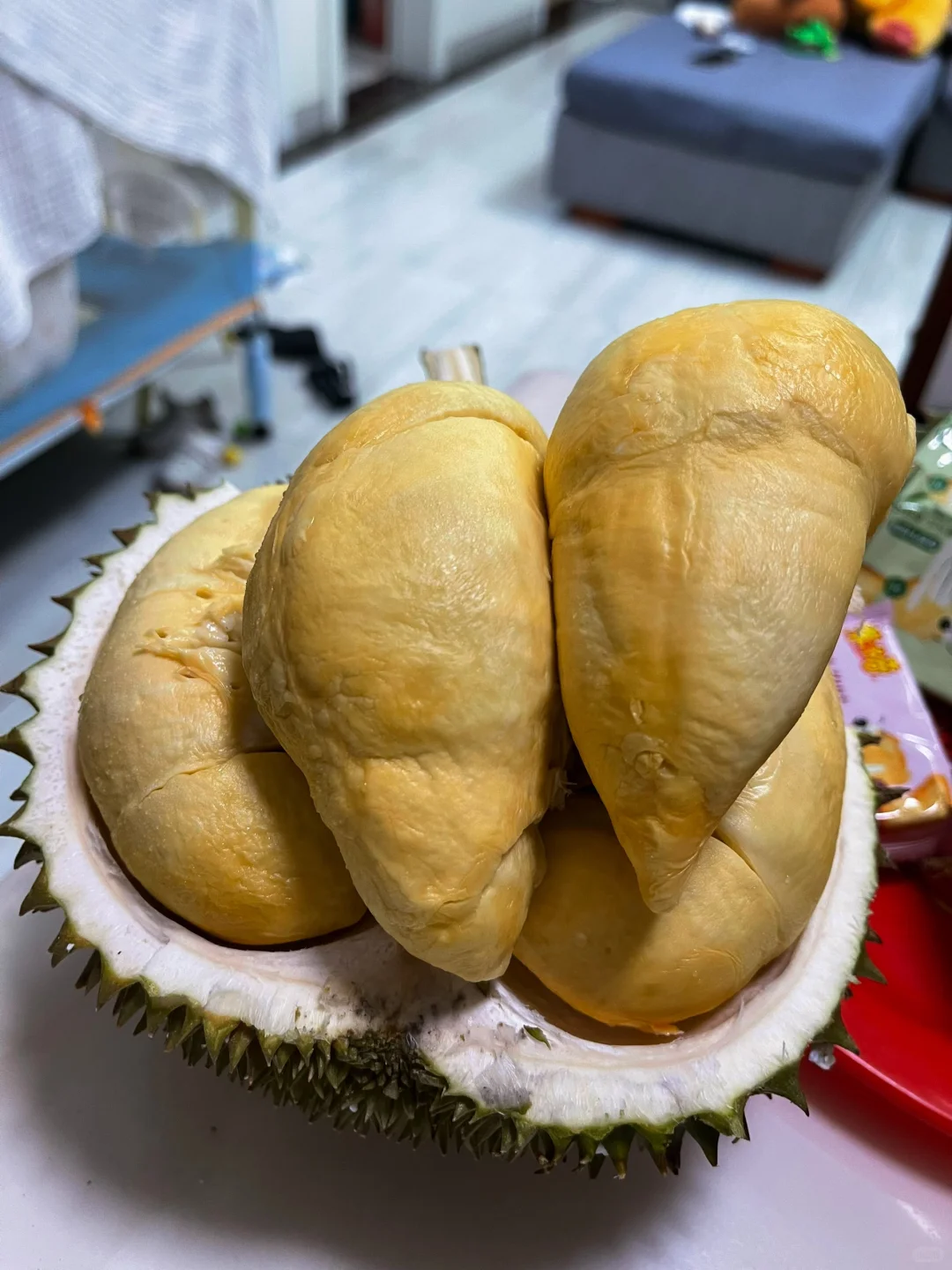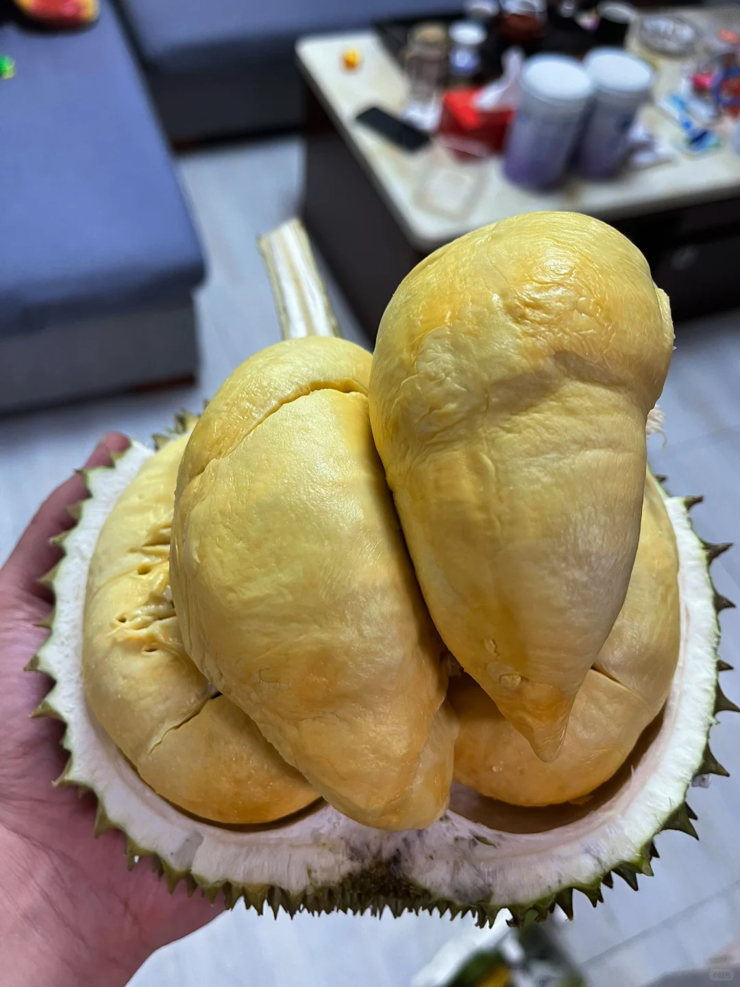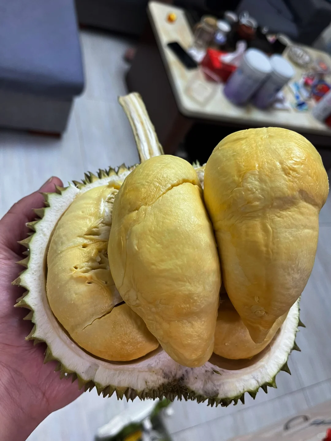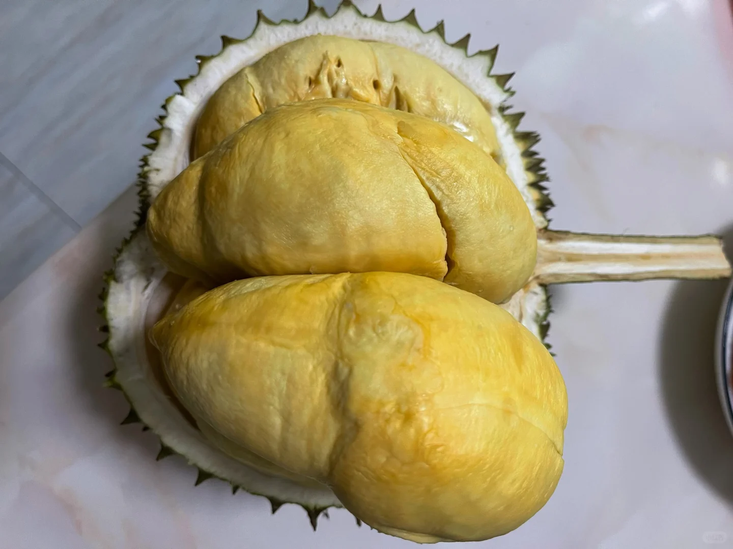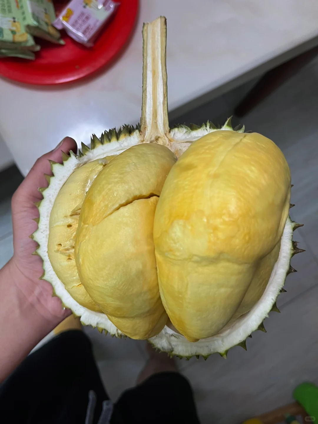 泰子鲜的长柄,我的天!9月份!房房惊喜大胖子!稍稍熟了一丢丢,就稍稍,如果是昨天开肯定得纯干鸡肉丝,泰国榴莲还是得吃干包今天的状态就像吃绵密的冰淇淋一样,浓郁的味道冲击味蕾,太幸福了吧!九月份还能吃到这么顶级的长柄!开心~明天股票大涨!\n
