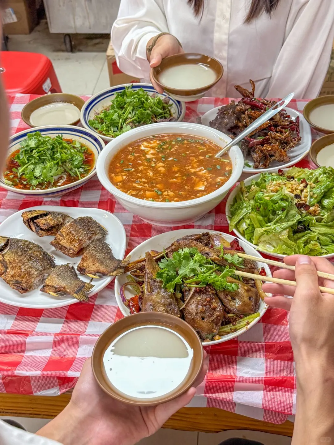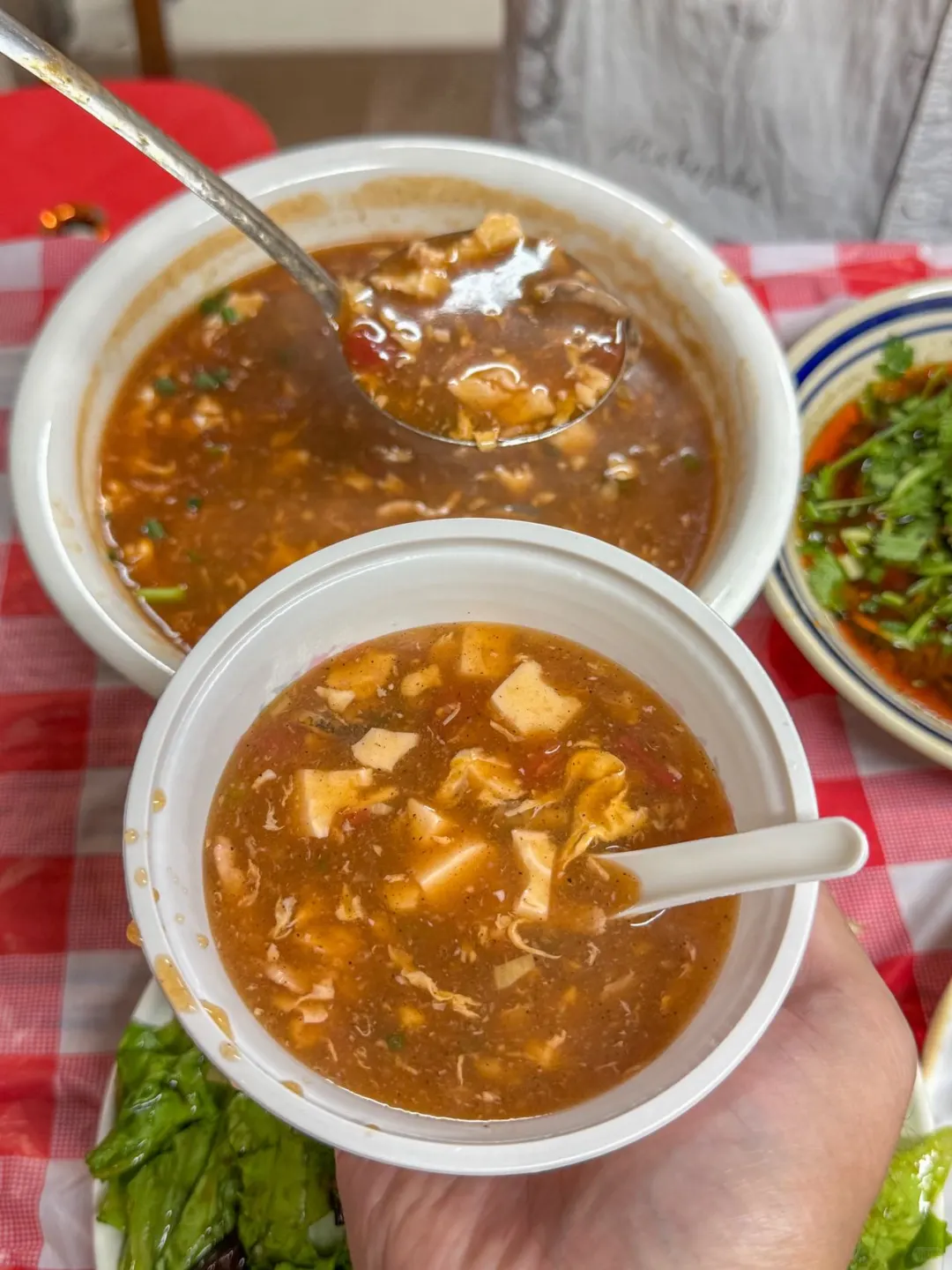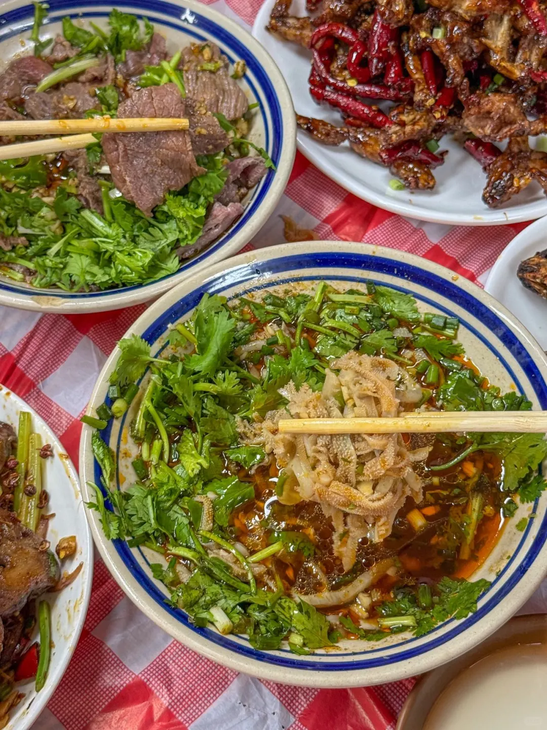 谈业务到晚上九十点钟 ,\n饥肠辘辘去往地铁站的路上 ,\n一下子看到了这家排队挺多的小馆子,\n店里面现做的生烫 香味远远的都飘过来 ,\n实在忍不住本来点了一大桌 ,\n结果真是出乎意料的好吃 !!\n他们家的这个生烫毛肚真的没毛病 ,\n店里的火候把控得无可挑剔 ,\n毛肚丝爽脆 口感超级棒 ,\n蒜香味与香菜的香味相互交融 ,\n越吃越香 越吃越上头 !\n怪味壳马 绝对是下酒界的王者 ,\n炸得相当透彻 骨头都是酥酥的 ,\n甜中代辣 出乎意料的香 ,\n店里面甘甜的米酒 一下就喝了好几碗 !\n最后再来上一碗养胃鳝丝汤,\n番茄的酸甜配上鳝鱼的鲜香 ,\n嫩滑的肉丝和入口即化的豆腐 ,\n每一口都是口感与口味的双满足 !