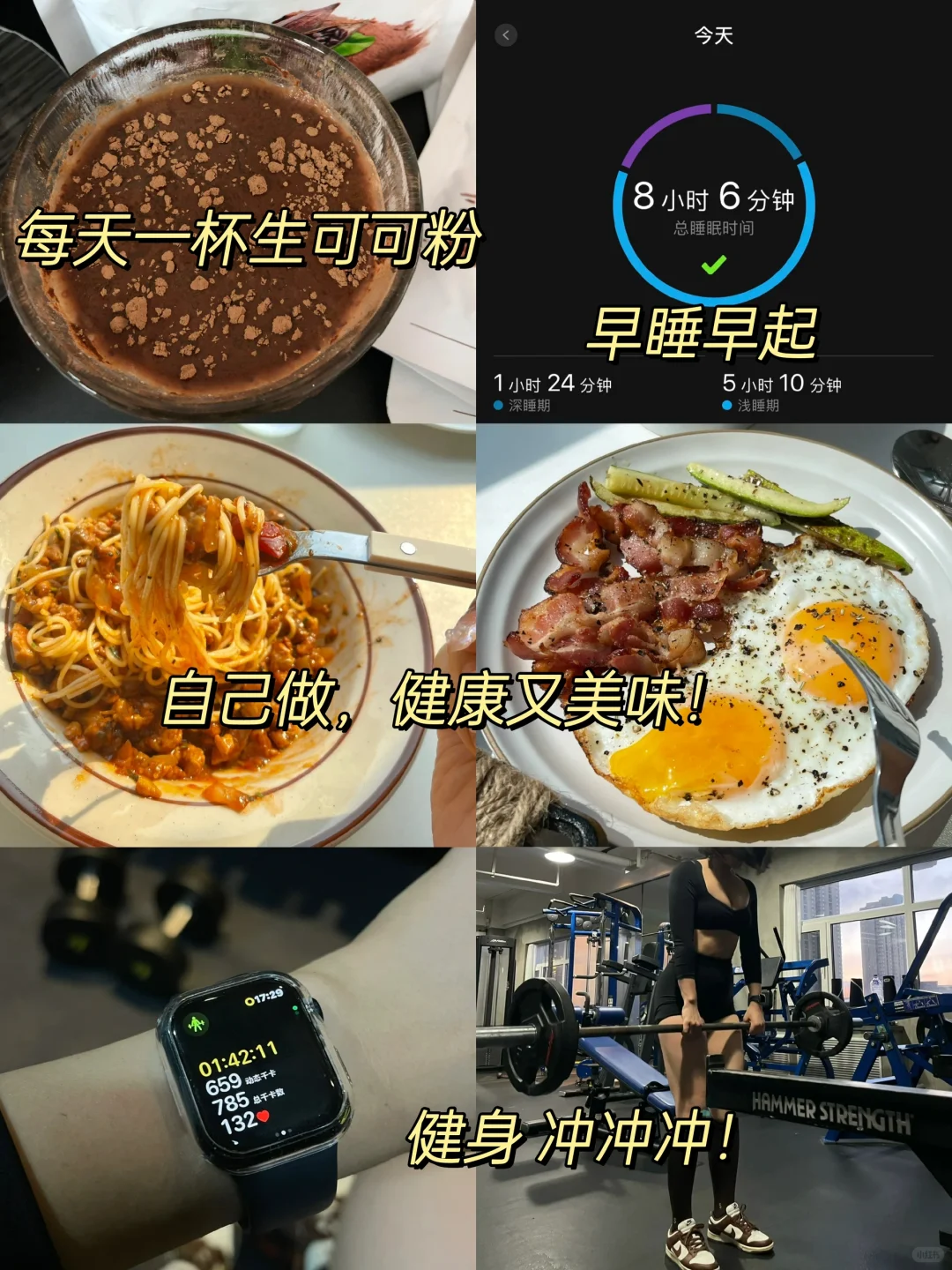 我真的太爱自己现在的线条了!身材瘦而不柴,有力量感,朋友也总夸我这样的身材披麻袋都好看,人美腿长,一整个模特本模!哈哈每次听到这样的夸奖真的很开心,但是这都是多亏了我一直在坚持内调+健身得来的!\n-\n讲真,我是两年前接触到内调和健身的,之前有段时间生活不节制胡乱吃喝,蛋糕奶茶狂炫,时间一长大腿和手臂长了一圈肉肉,照镜子能明显看出身材走样了,这样的状态持续了好久,后面我不想再这样颓废下去了,想要和以前一样瘦,就开始改变自己,一直坚持到现在哦~\n-\n先说下我的变化啦:\n1.体重↓,五官精致,有了锁骨、直角肩\n2.身材紧致,体态都变好了,成了别人口中的“衣服👗架子“\n-\n给姐妹们浅浅分享下我保持身材的方法吧~\n-\n🍃健身运动\n下班之后去健身房暴汗,就算不去健身房,至少咱们得动起来!平常大家可以看视频跟练,八段锦、刘耕宏我都练过,效果都蛮好的,具体都是因人而异看你们到底适合什么运动方式\n-\n🍃坚持内调\n外练内调是我坚持的方法,运动塑造外形+内调助力!二者结合事半功倍,缺一不可。内调我喝的是优雅大师生可可粉,也是我管理身材的主力军了,无糖的,喝着没负担,还有很强的饱腹感,最重要的是它里面含有黄烷醇,可加速🔥脂,再加上里面的可可碱能提高身体代谢,增加能量消耗,运动时喝一杯哐哐出汗,现在每天的状态都贼好,马甲线也越来越明显了,小腿收了一大圈,看着自己的身材越来越棒是真的会为自己感到自豪呀!\n🍃戒掉熬夜\n刚开始戒掉熬夜还是很难的,但我强迫自己每天早起,虽然早上起来头是晕乎乎的,可到了晚上就没精神熬夜了,只想睡觉,慢慢地就养成早睡早起的习惯了哈哈~\n-\n姐妹们简单的坚持会有大大的回报,试过就会知道内调+健身到底有多香~身材好了后人都有自信啦~\n#内调#健身#可可粉#生可可粉#见人不如健身#马甲线#好身材#辣妹#身材管理#变美我熟#笔记灵感#运动女孩