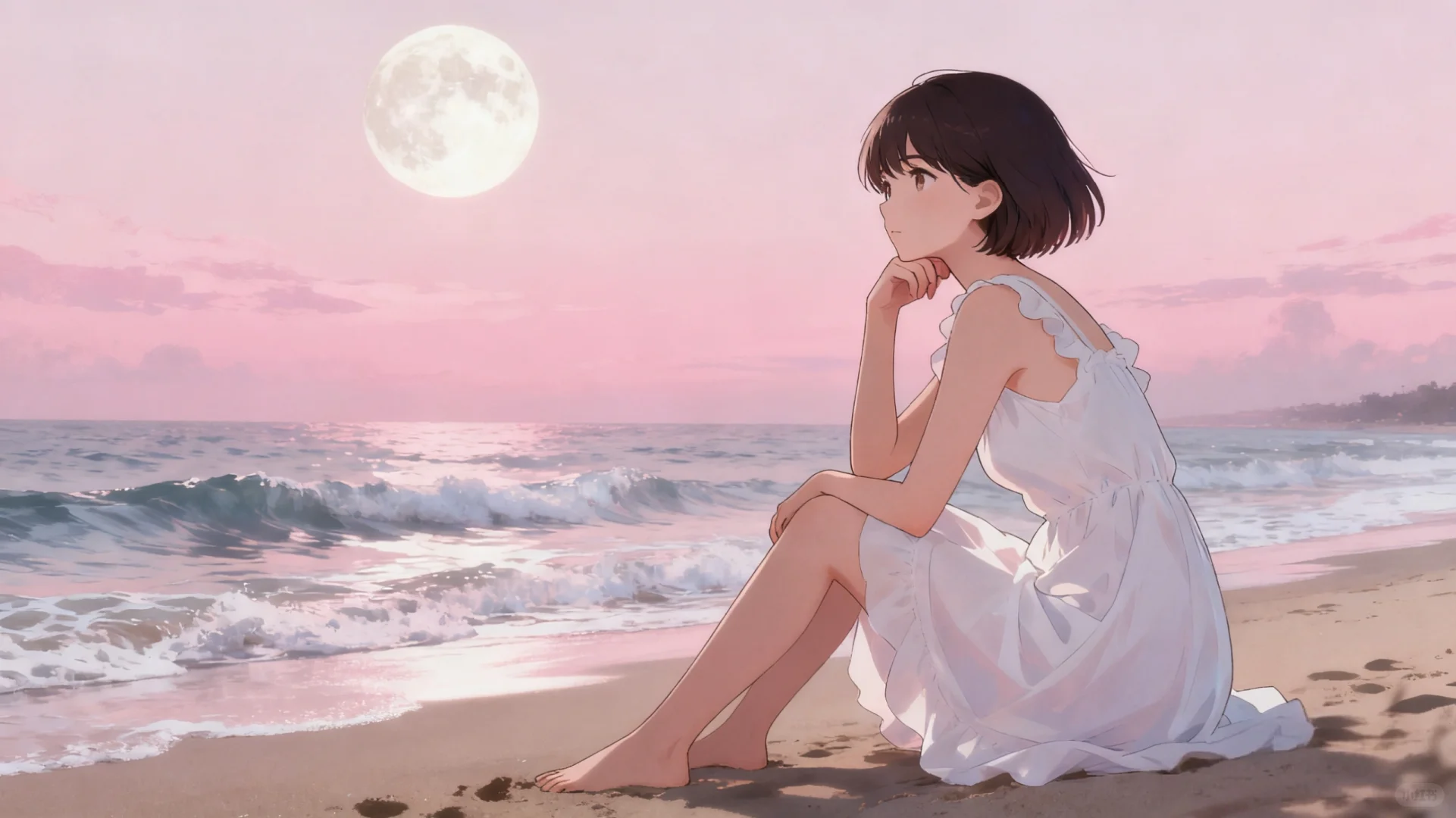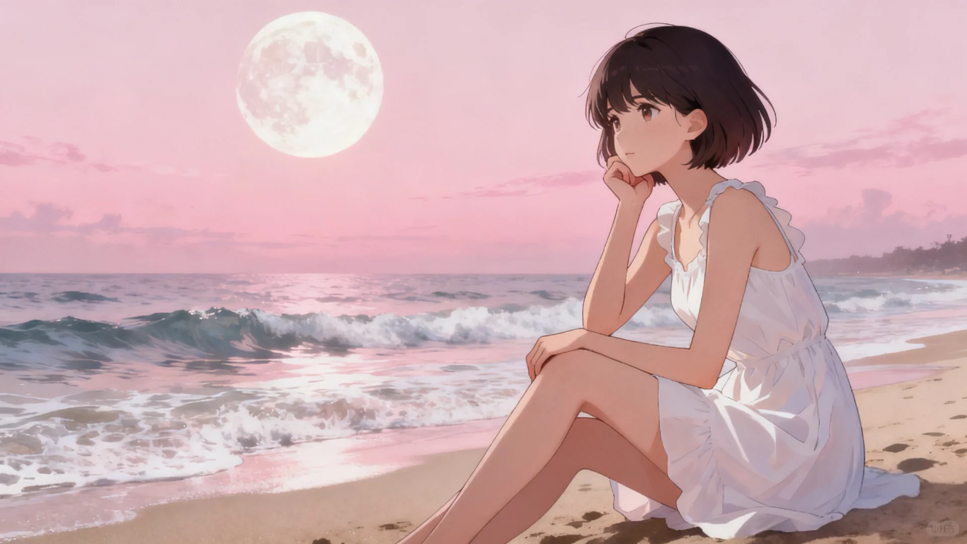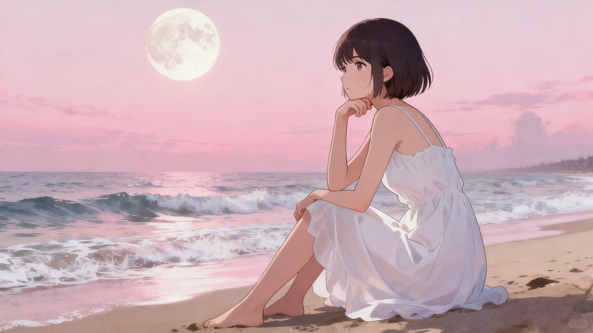 #生活需要分享欲 #唯美女生头像 #少女的征途是星辰大海 #治愈系插画 #唯美头像 #散落人间的神仙女头 #女性成长心旅\n \n粉月下,海声轻晃,白裙女孩在秋千上,把心事荡进温柔的潮汐里。