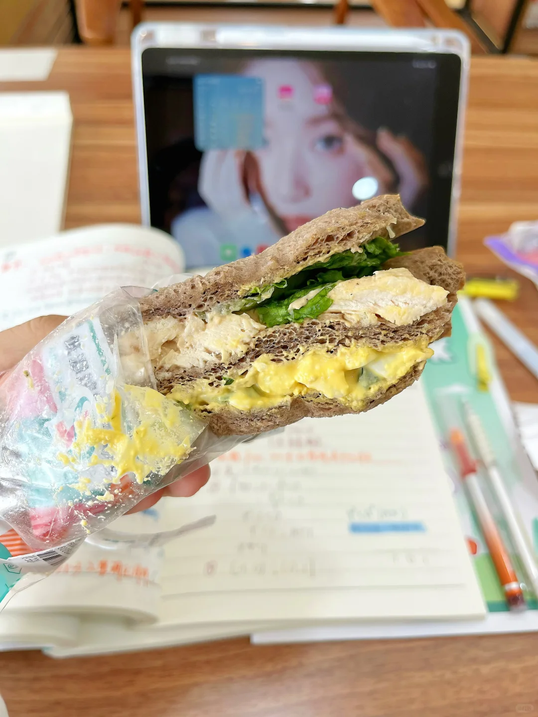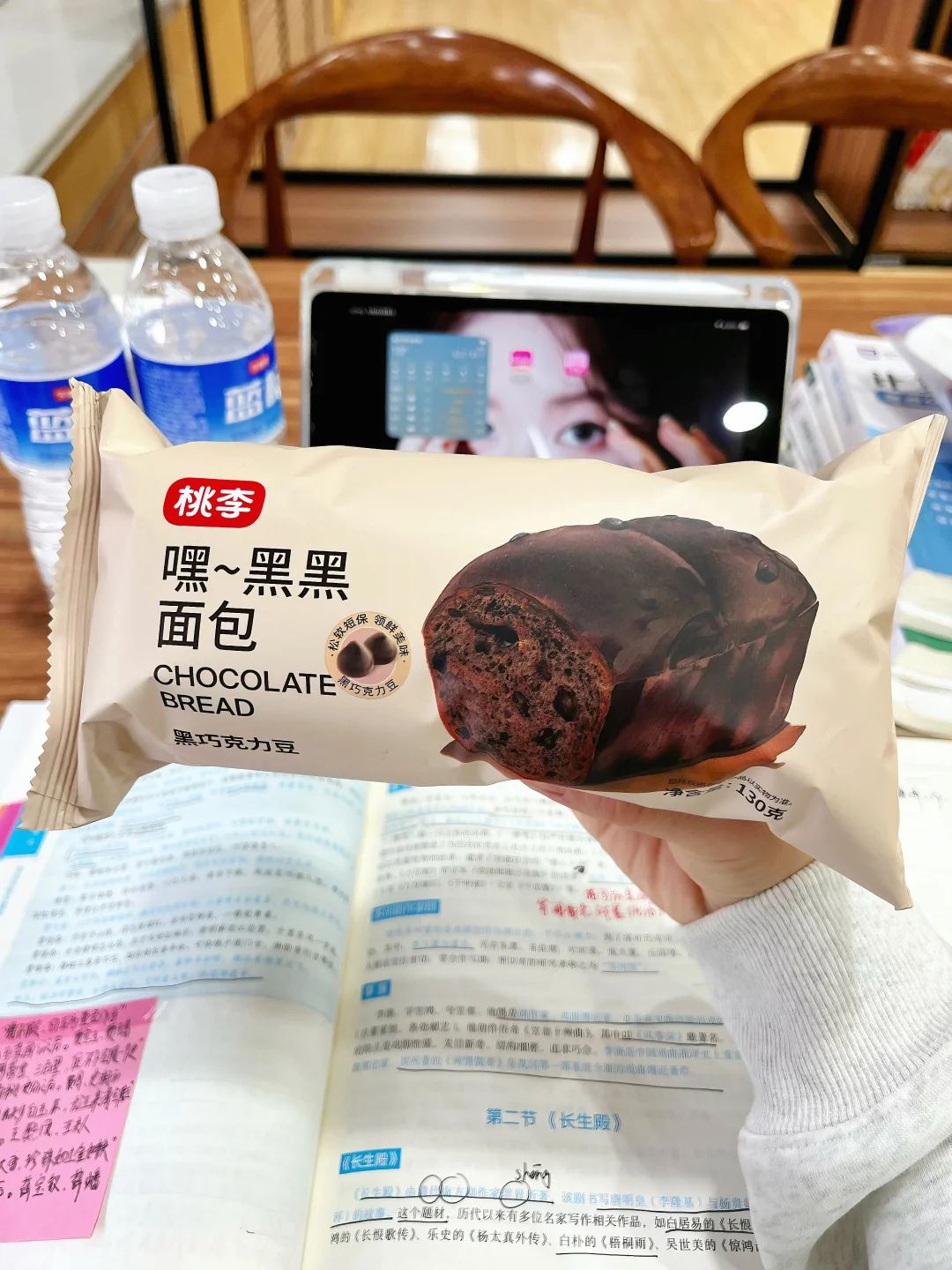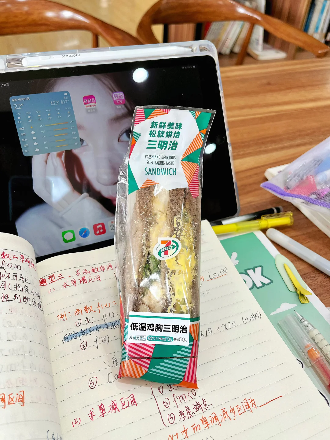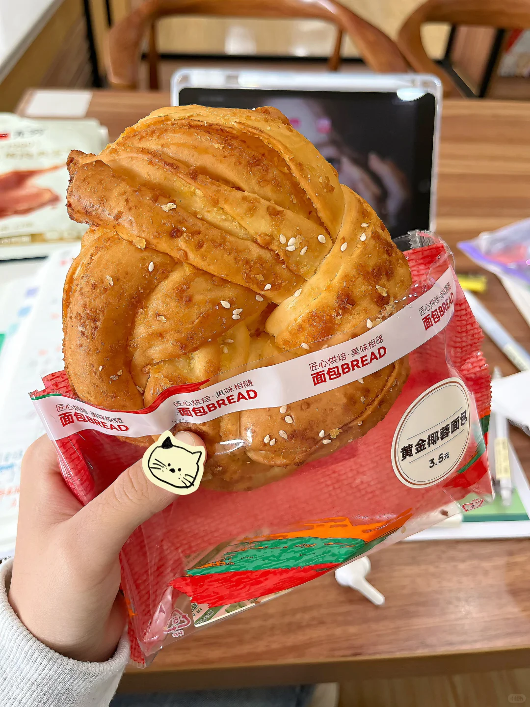 hihi刷到我,代表学习暂停⏸️要吃饭啦!\n今天周三无课,全天泡馆\n早:\n🥯711 黄金椰蓉面包(296大卡)\n好吃好吃!!里面有很多椰蓉夹心,很大一个很顶饱!吃完一上午不饿[心心眼R]\n午:\n🥪711低温鸡胸三明治(166大卡)\n711的三明治根本不用多说,完全没有踩雷的!里面的鸡肉也很嫩\nps:❌缺点就是里面的鸡蛋酱里有黄瓜,吃起来有响声🥹在图书馆要注意哦\n下午加餐:\n🍫🥐桃李 黑黑面包(426大卡)\n巧克力脑袋一定会很爱,里面有巧克力夹心,口感我也喜欢!非常大一个,吃完一下午都不饿,就是热量很高[抽泣R][抽泣R]#图书馆学习 #女大学生干饭日常 #大学生吃饭 #一起吃面包 #面包人面包魂 #大学生爱吃 #面包精的快乐星球 #适合图书馆的食物 #图书馆美食分享 #学习日常