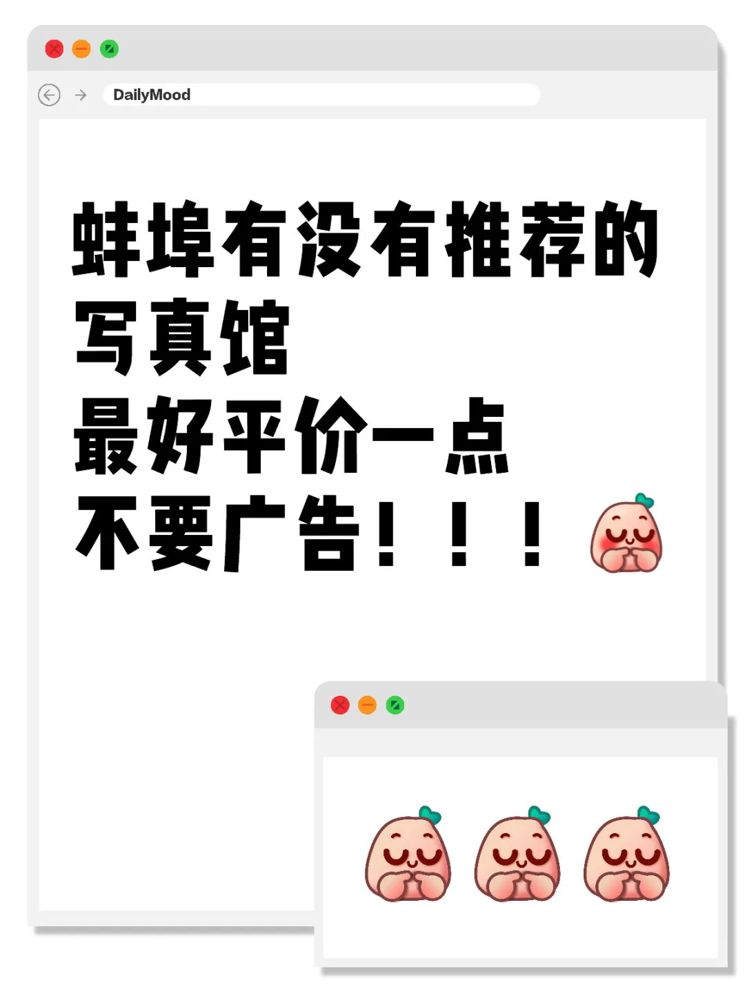 蚌埠有没有推荐的写真馆\n最好平价一点\n不要广告!!!