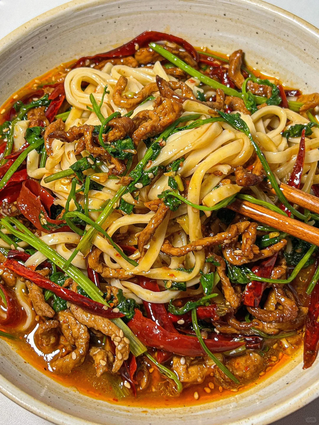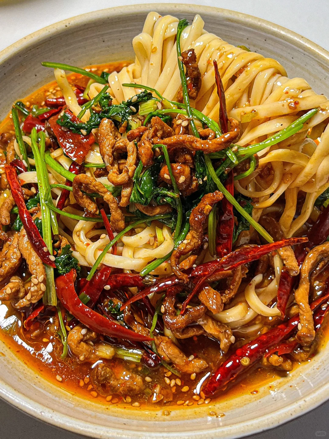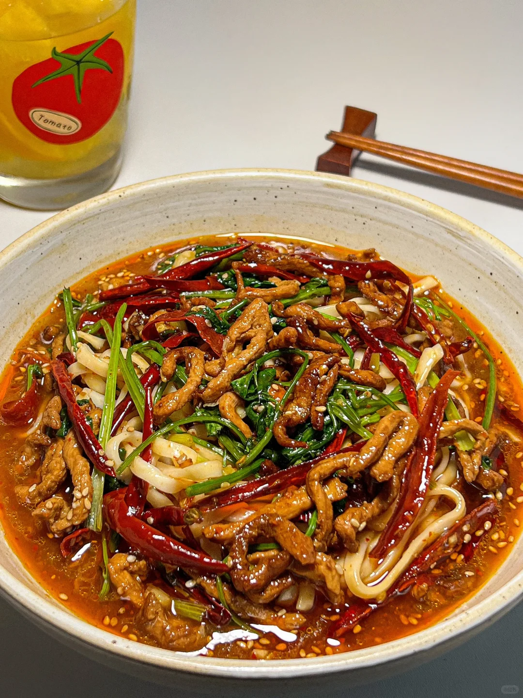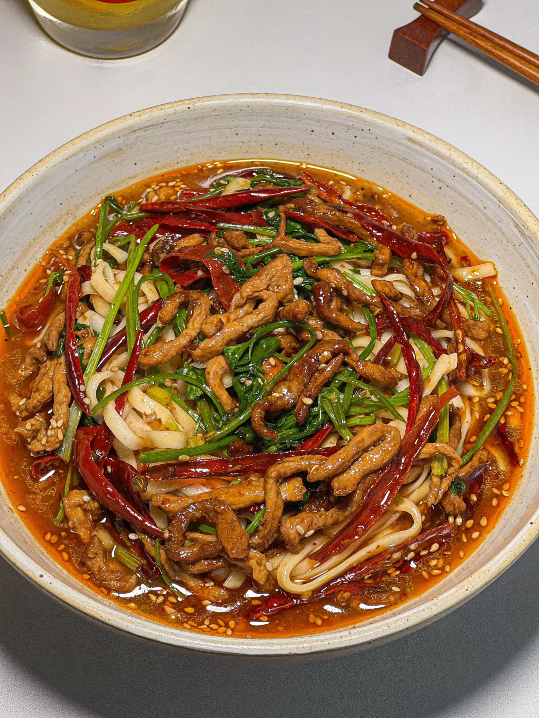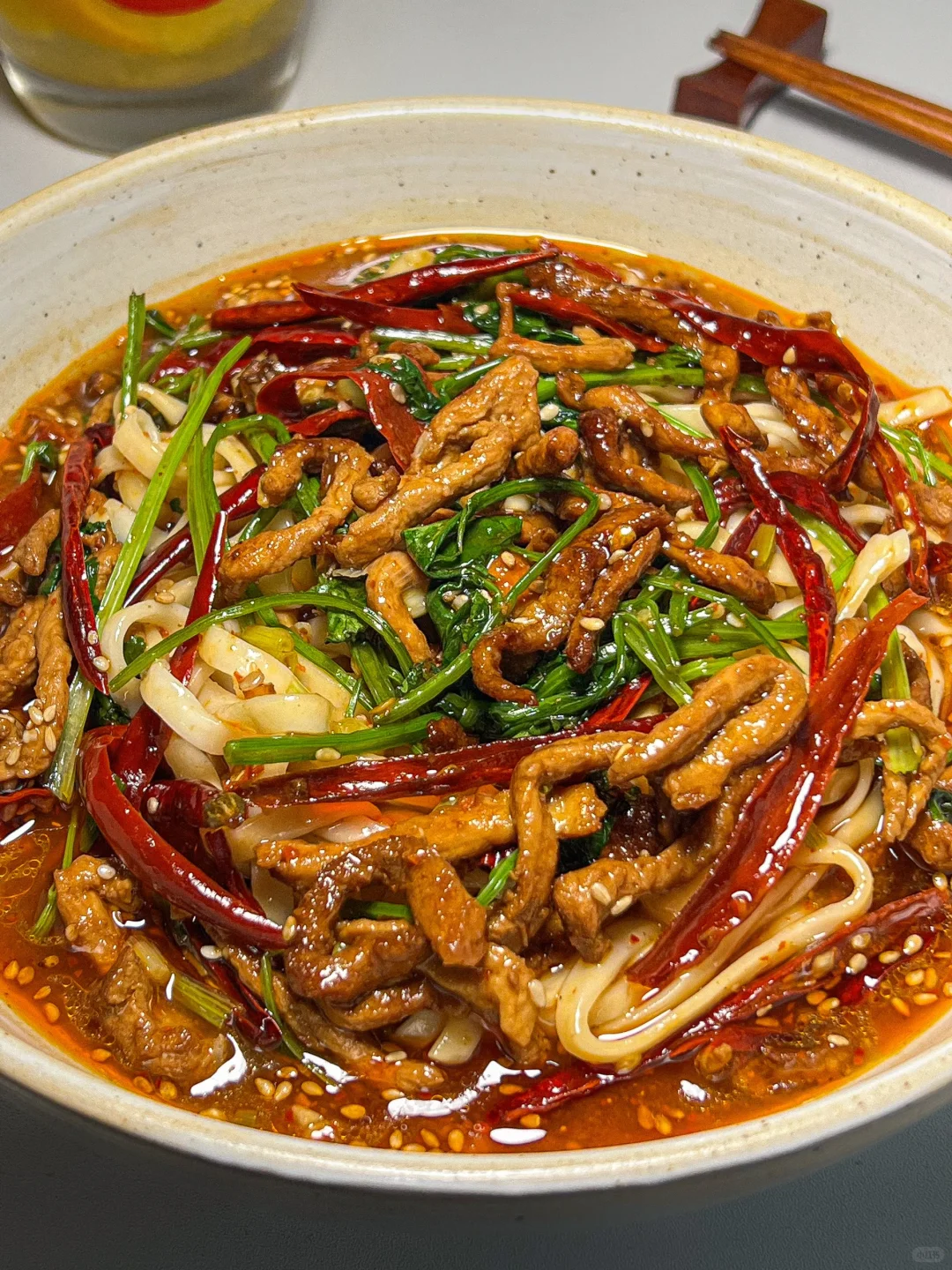 一人食|我的幸福晚餐·͜·♡ 香辣肉丝拌面🍜