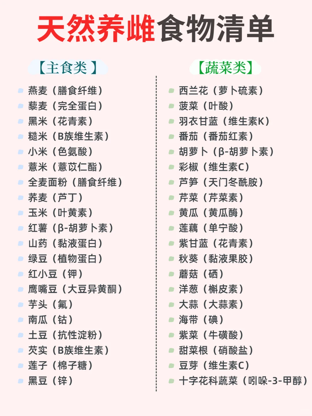 天然养雌食物清单🌟养雌才是漂亮的根基!