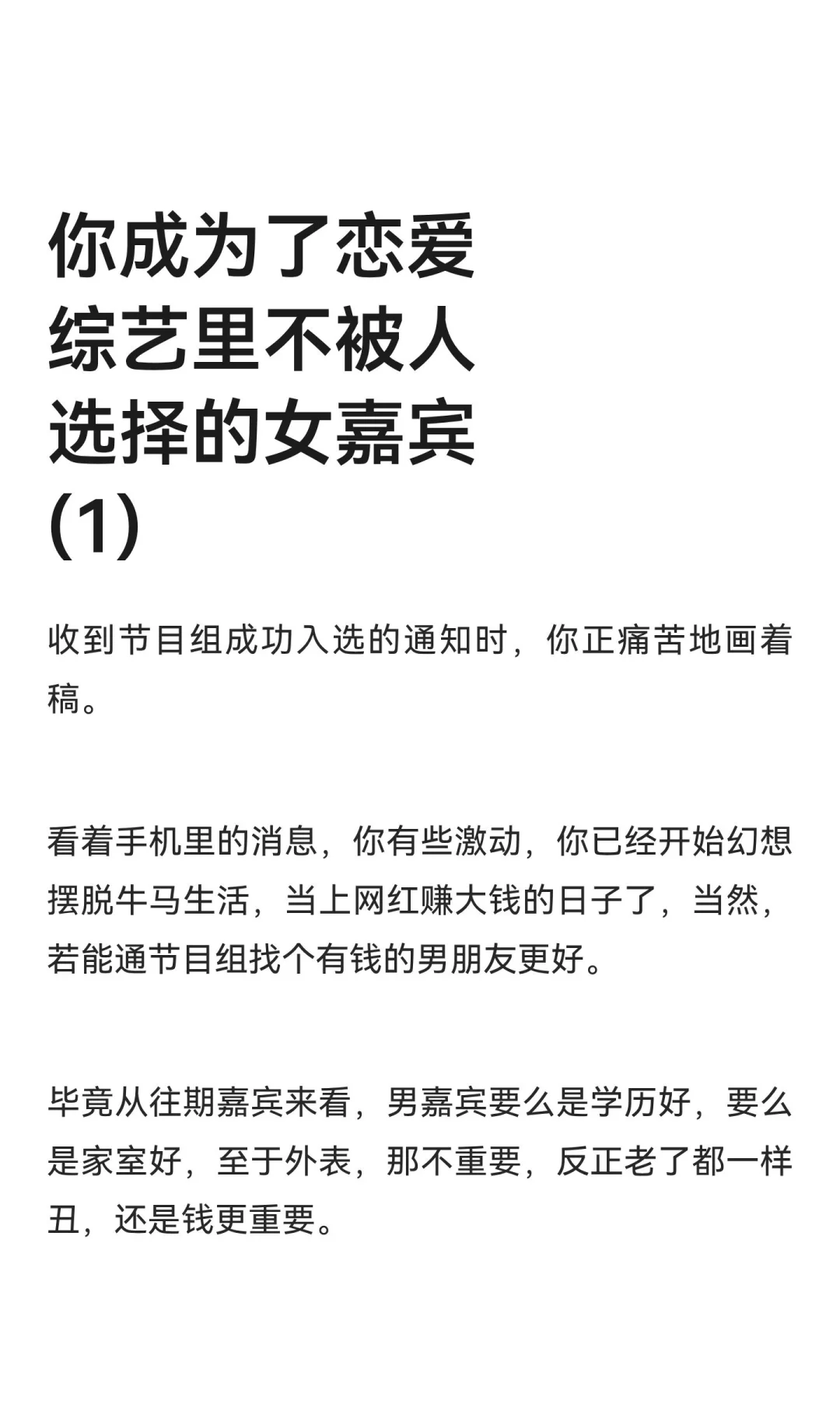 你成为了恋爱综艺里不被人选择的女嘉宾(1)