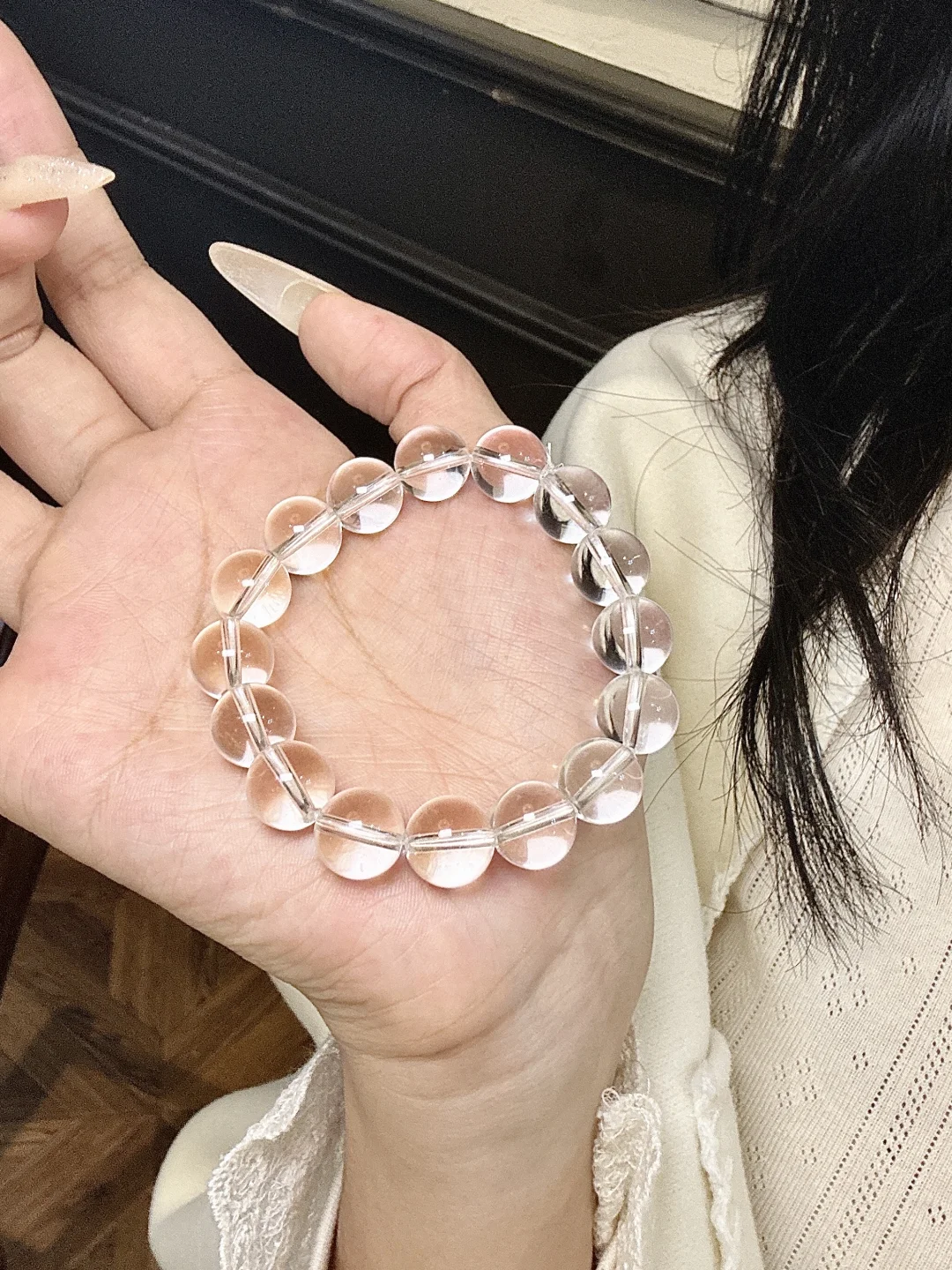 天然 天然 天然!\n支持鉴定!正品保真 假一赔十!\n \n真的是天然的! 真正的白水晶都是带有一点瑕疵的!全净体是为了追求完美去一点点挑出来 而且天然白水晶很脆弱 打磨也容易受损!所以全净体的会特别贵!\n \n我们这些都是从全净体里挑下来的 近净体 和微瑕的!所以便宜给大家当福利品清了! 性价比很高很高!\n \n新手小白闭眼入!!比较追求完美的宝子 可以选择几乎净体!接近全净体了!\n \n品质高货!无任何添加!附带证书\n数量不多 要的姐妹抓紧!可以联系客服先品质在发货!\n卖完🈚️!\n#白水晶 #白水晶手链 #白水晶手串 #白水晶搭配 #天然水晶 #天然白水晶 #水晶 #手串 #女生水晶 #女生手串 #手链 #礼物