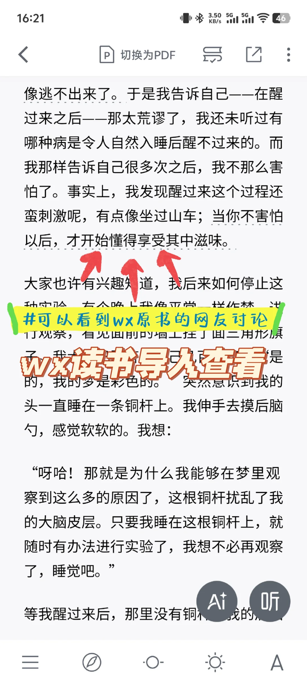1️⃣打开ai智能体\n2️⃣输入xxxx(书名)电子书\n3️⃣跳转☁盘保存文件\n4️⃣导入阅读器/wx读书/手机阅读\nps:导入wx读书可以查看原书的网友讨论\n