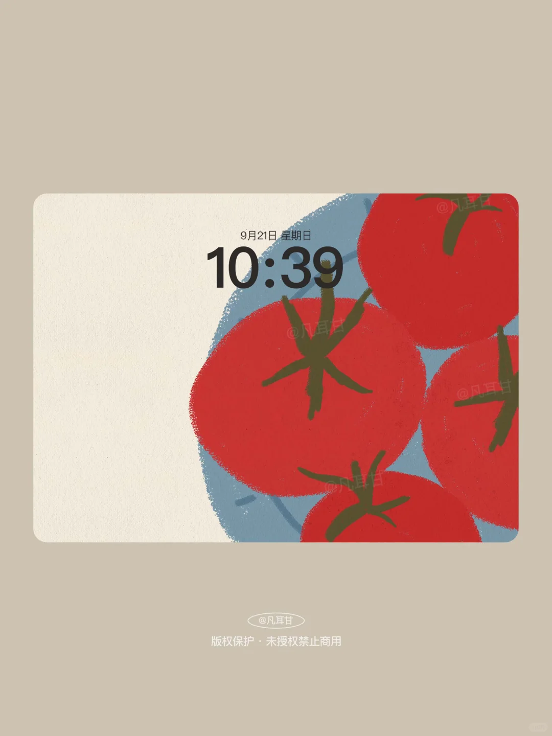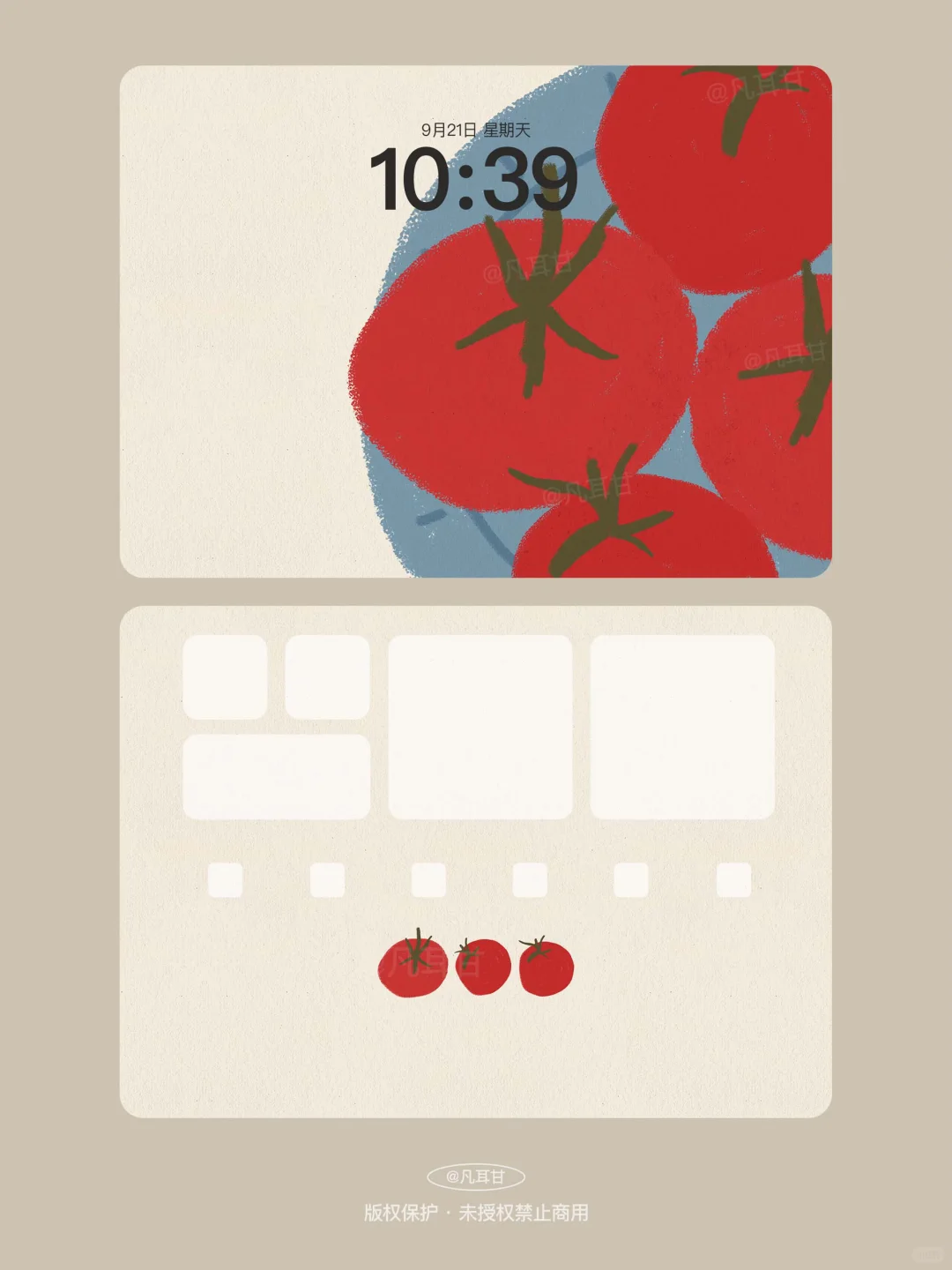 •\n🍅\n•\n锁屏壁纸&主屏壁纸\n•\n时间配色:建议选黑色 或 系统自动配色\n•\n