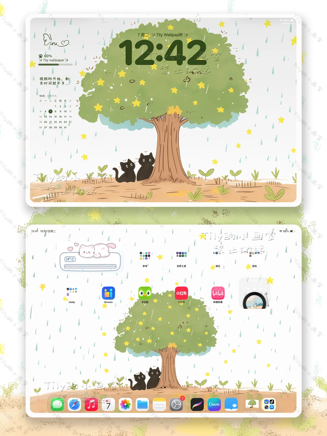 雨不会一直下ོ 🫧,但一直会有雨😺\n- - - - -\n壁纸数量:2张(限免期内,仅分享锁屏版1张)\n适用设备:iPad 平板\n组件搭配:iScreen\n字体颜色:263E0F\n- - - - -\n🌻原创壁纸,已申请原创保护\n🈲商用🈲二创🈲转载,侵权必究\n#秋日壁纸 #雨 #雨壁纸 #雨天壁纸 躲雨 #雨中小猫 #小猫躲雨 #雨滴壁纸 #猫猫 #浪漫生话的记录者 #猫咪壁纸 #猫咪 #猫 #治愈壁纸 #治愈系壁纸 #每日壁纸 #全屏壁纸 #壁纸 #iPad壁纸 #ipad壁纸 #ipad壁纸锁屏壁纸 #ipad平板壁纸 #ipad插画 #卡通壁纸 #高清壁纸 #每日壁纸 #插画壁纸