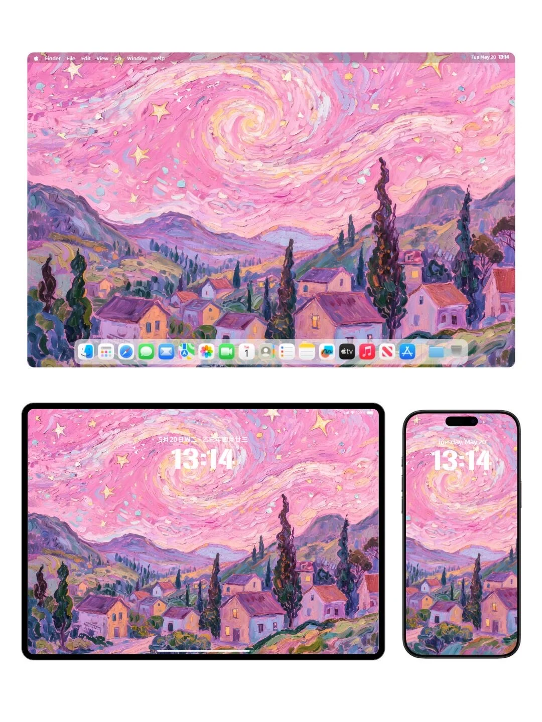 梵高粉系星空幻境💖治愈系氛围感壁纸