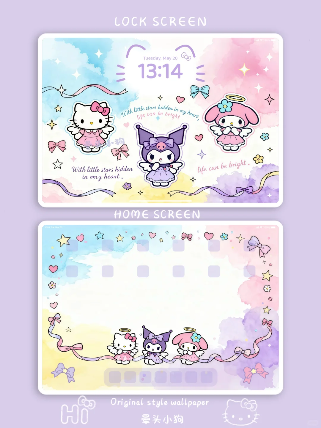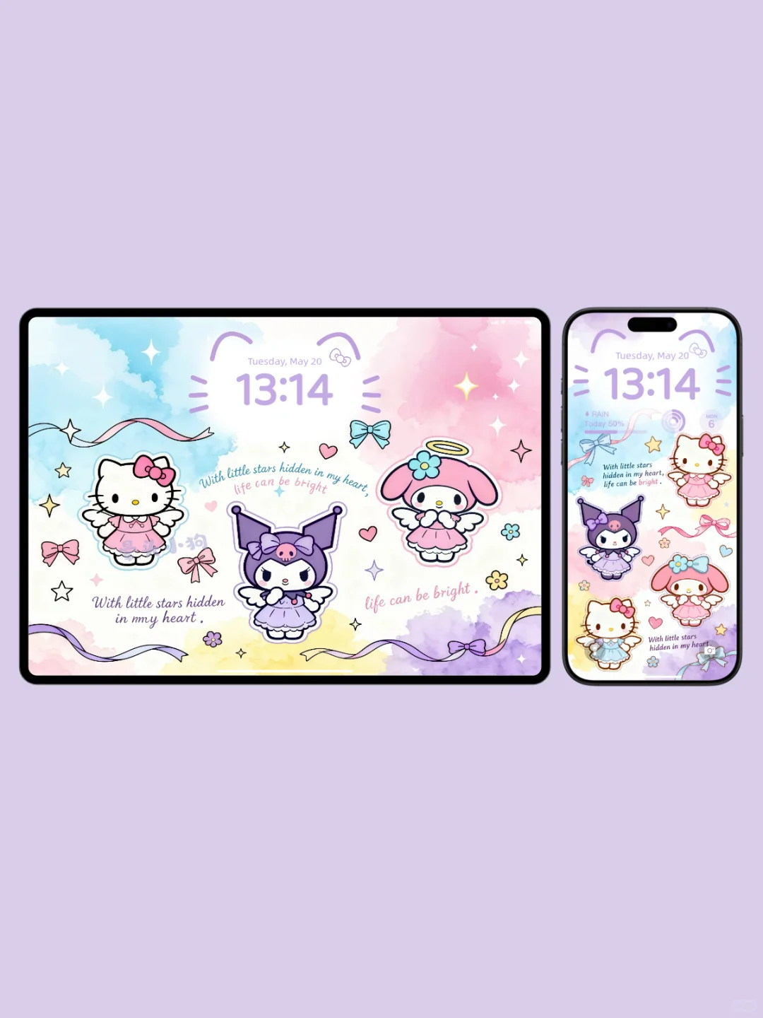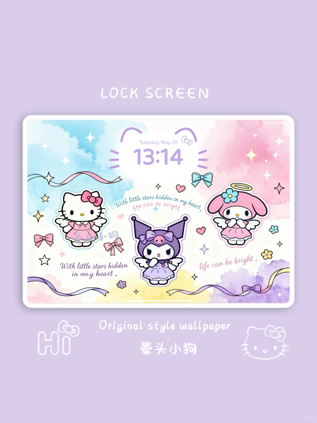 人生有一百次失望的时刻\n就有一百零一次被朋友的爱打捞的瞬间\n––––––– ✄ ––––––\n锁屏字体色号:C3AAE5\n本套壁纸包含【锁屏+主屏】共两张\n分享版仅发[锁屏一张】\n––––––– ✄ –––––––\n🚫二改🚫 盗图🚫 转载\n未经授权不可商用\n#平板壁纸 #壁纸 #可爱壁纸 #美乐蒂 #库洛米 #送你好看的手机壁纸 #hellokitty #凯蒂猫壁纸 #少女心壁纸 #iPad壁纸