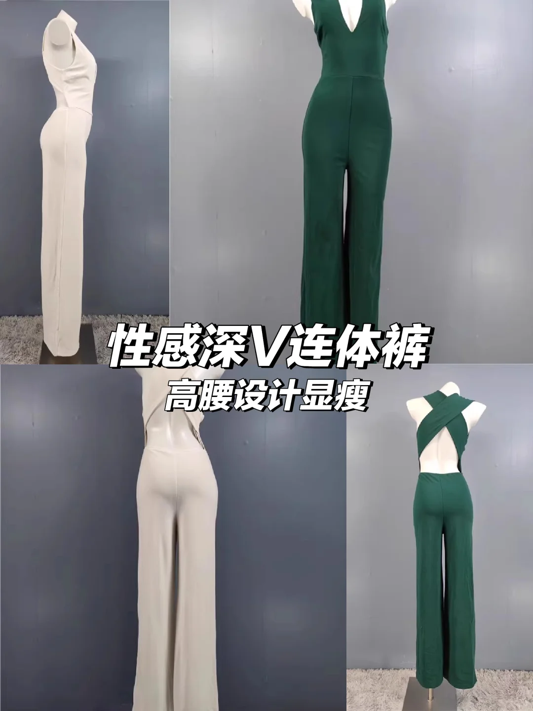 我太会淘!外贸性感深V连体裤👙显瘦显高