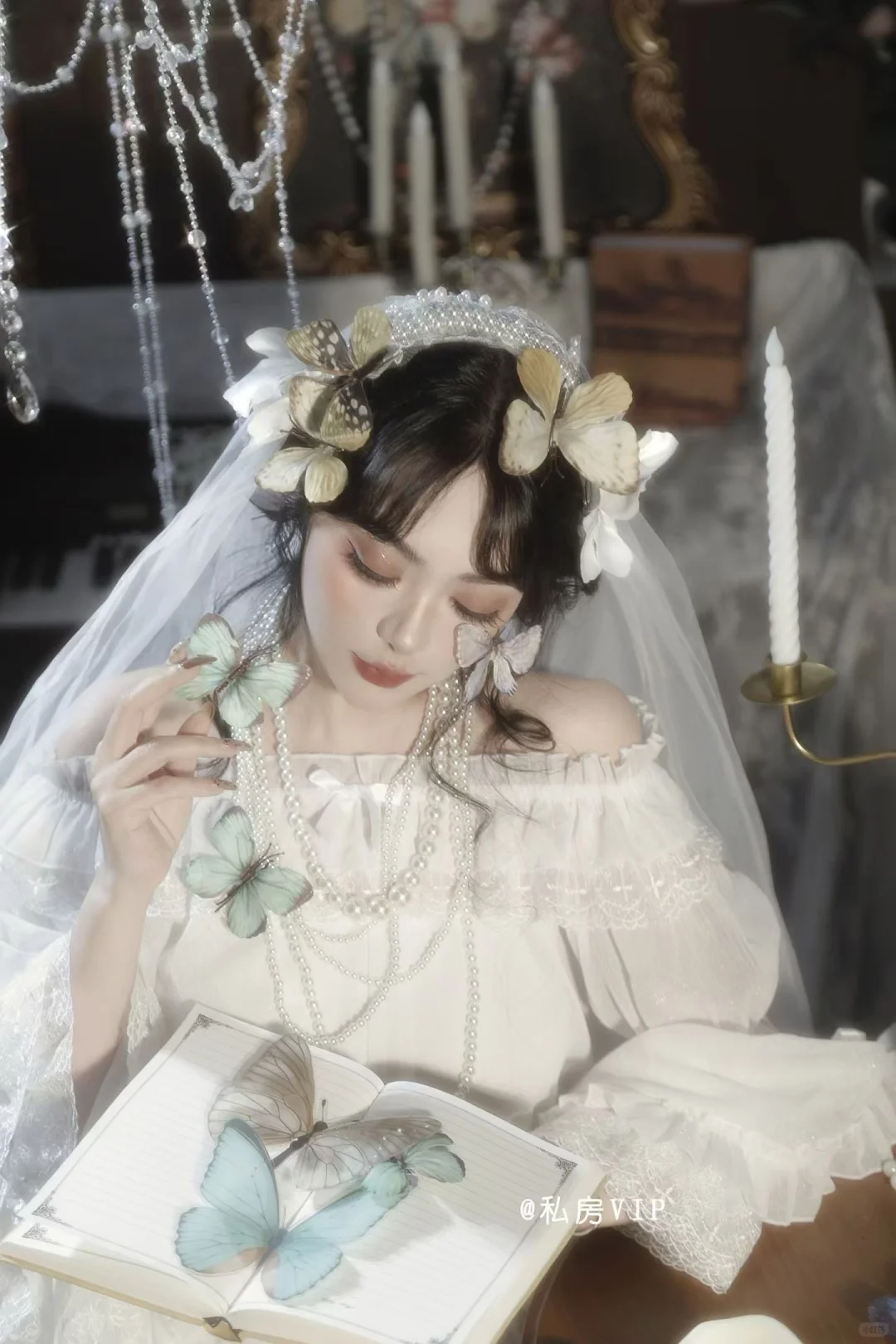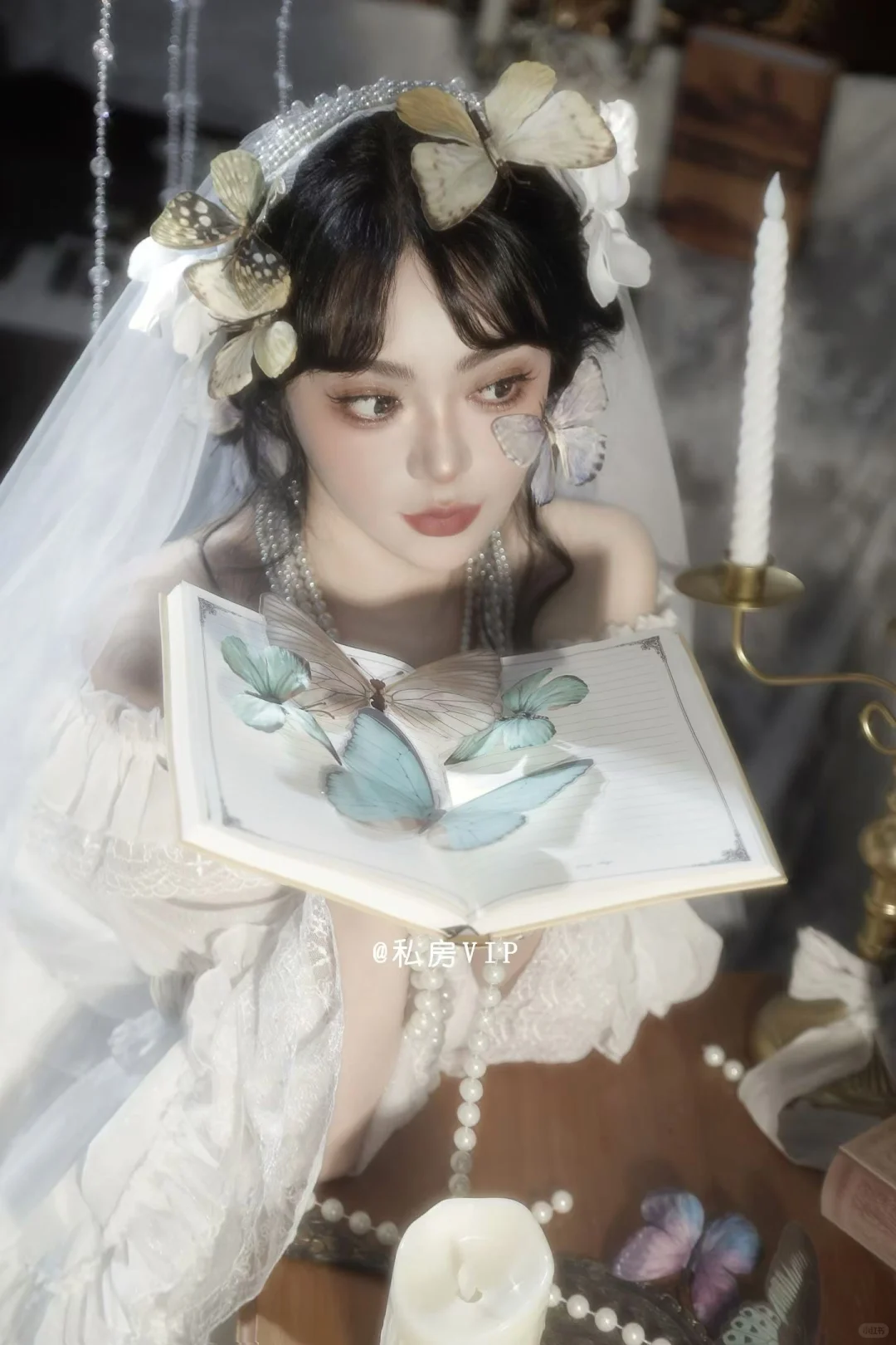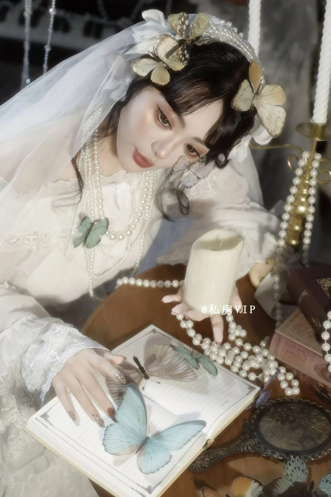 不管是手捧蝴蝶标本册的特写,还是摆弄珍珠串的动态,每一张都把“优雅”二字贯彻到底,而且完全不用怕僵硬,摄影师会引导动作,拍出来自然又灵动。