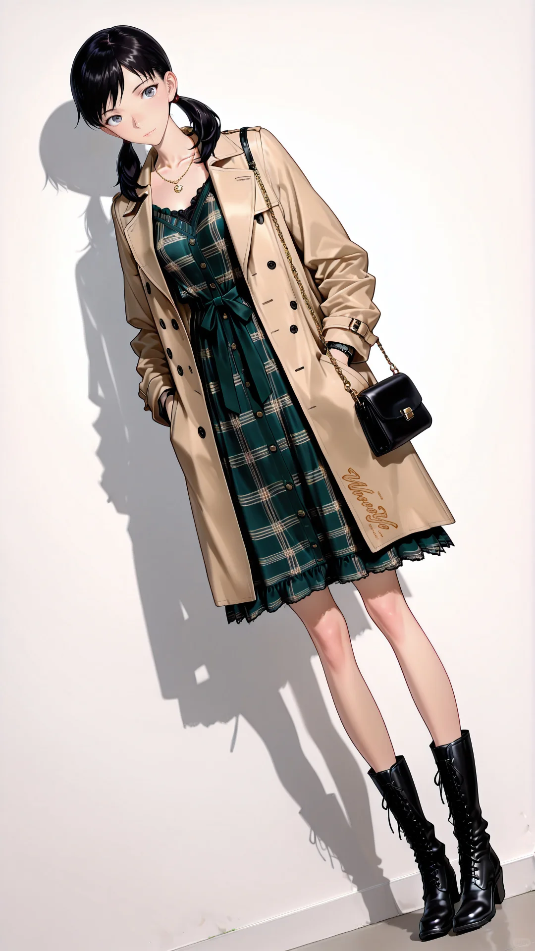 卡其风衣+墨绿格纹裙,腰带一系瞬间藏肉显瘦!