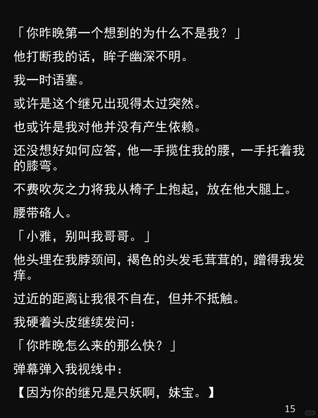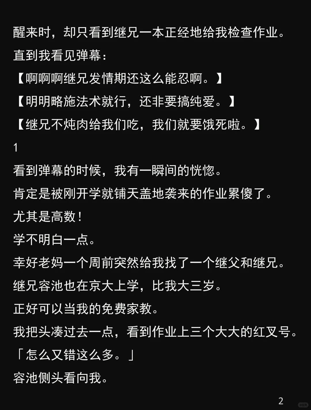 继兄眼神不对,继兄总给她辅导课业,眼神异样。她睡梦中被毛茸茸的东西蹭,醒来见他一本正经。直到发现弹幕:“继兄是狐妖,发情期在忍”“他想咬她却装纯爱”。这场藏着秘密的暧昧拉扯,勾得人想追到底。