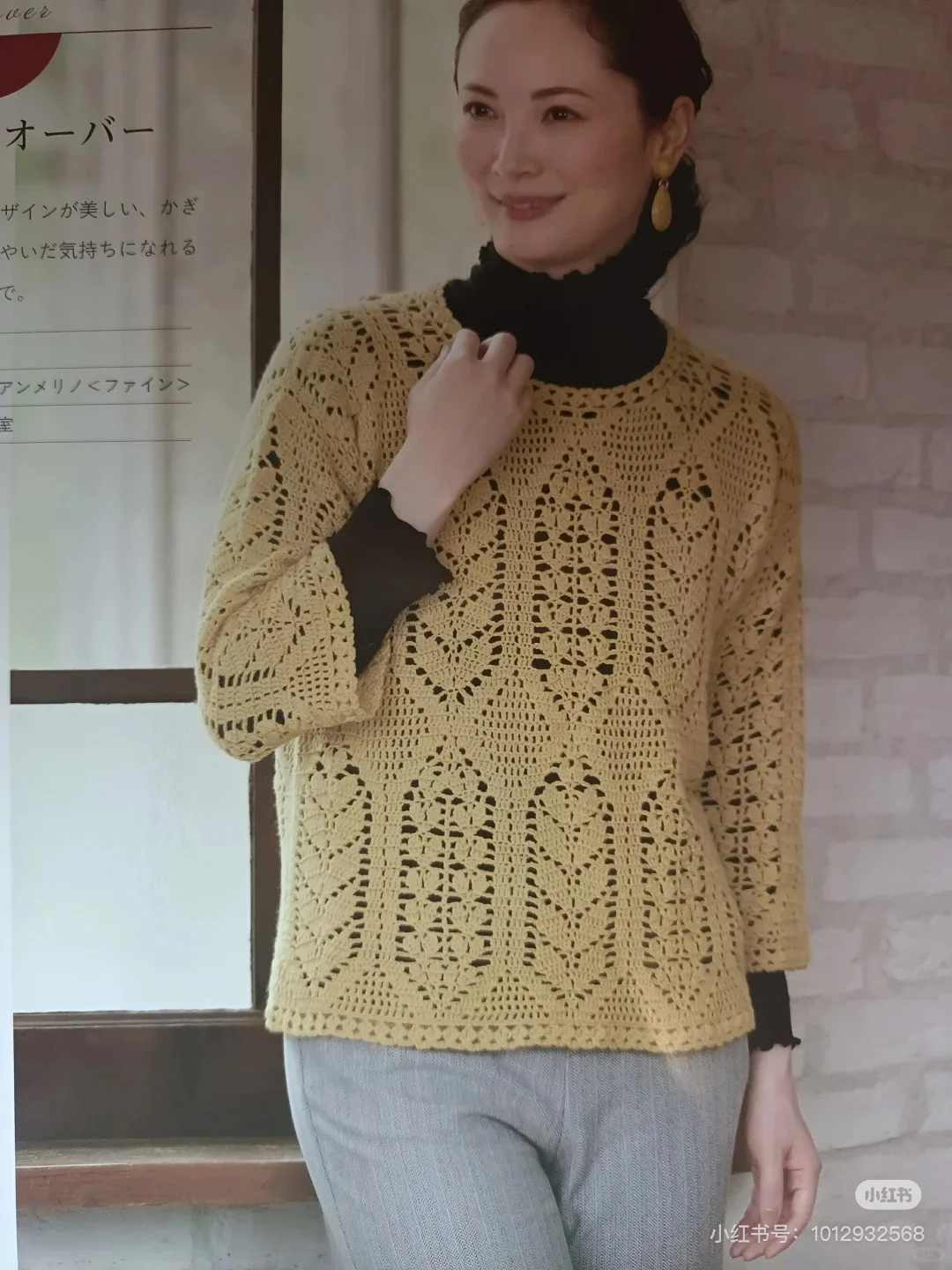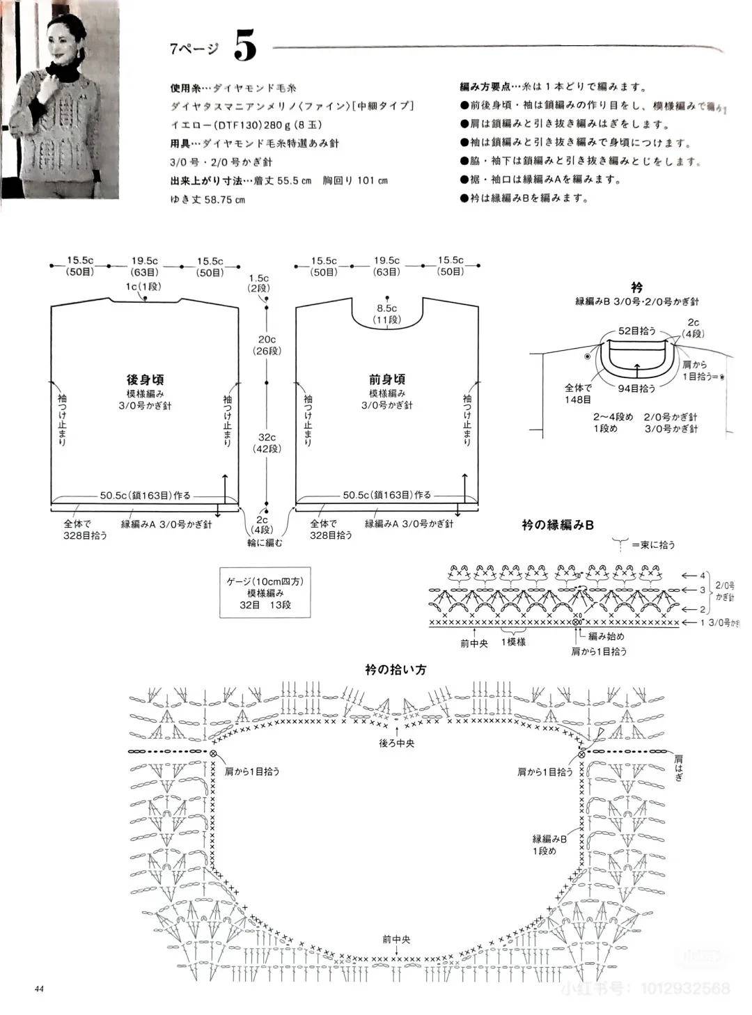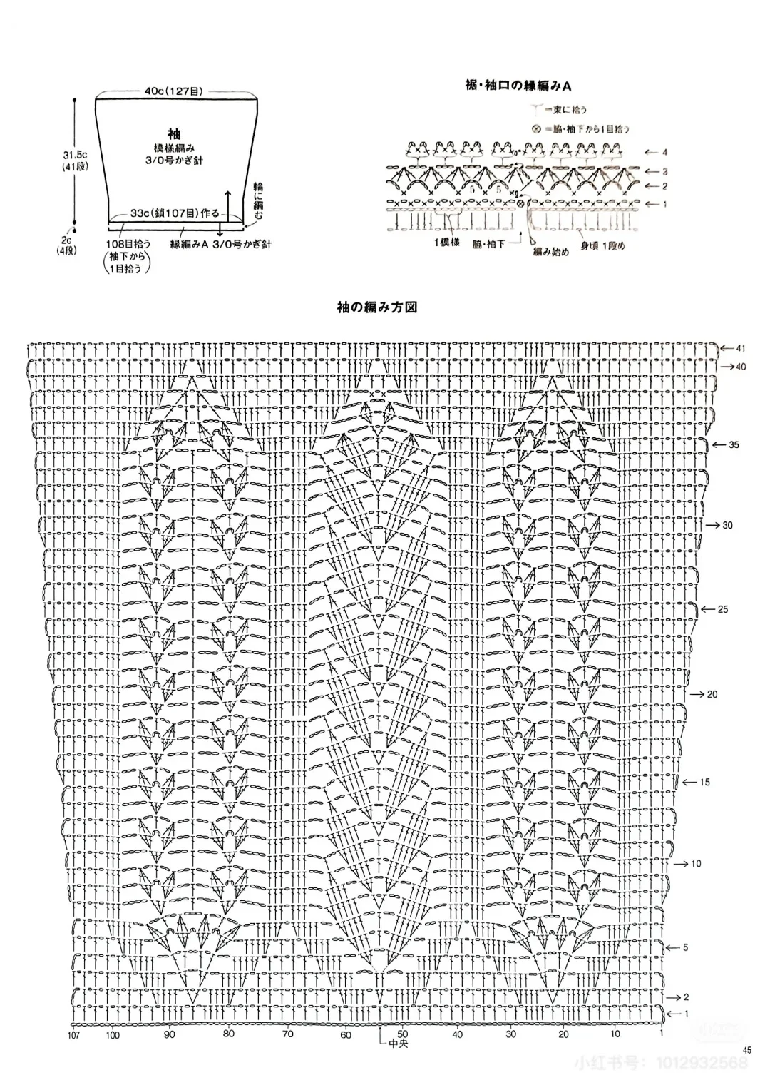 【上衣·钩针】蕾丝镂空毛衣钩针图解