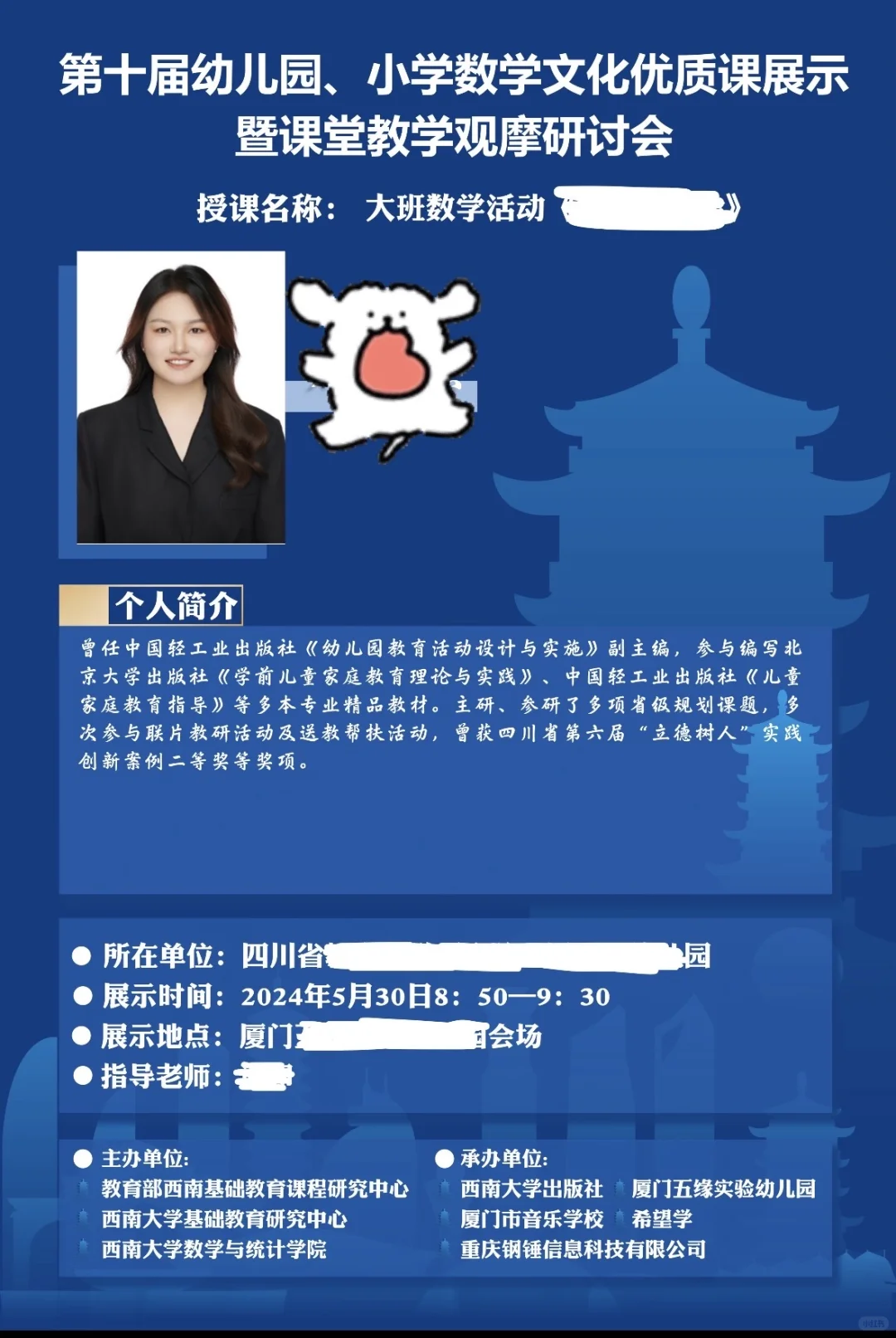 🧡HBU全日制学前教育学硕士毕业,在高新一事业单位任研究型幼儿园教师,🤗擅长儿童教育,工作资源与自身专业技能皆可赋能未来子女教育~