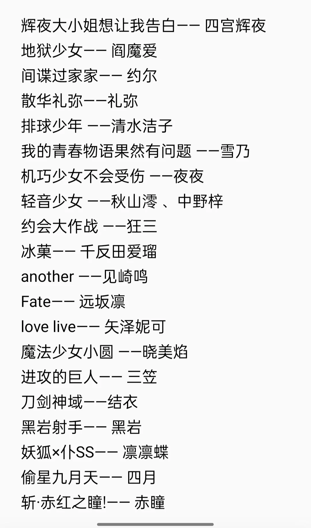 上班摸鱼,总结了一下黑发角色,欢迎补充~