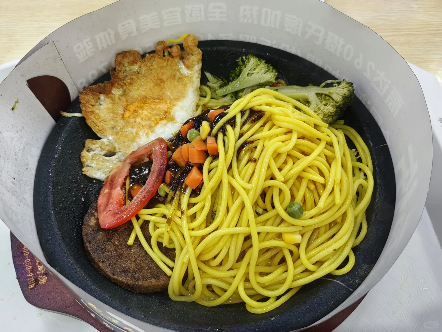 今天吃北四西里巷! 点的 牛排意面 黑椒味 17块 烫烫嘟 牛排就是个小圆饼 味道一般般 意面到后面好吃点 但档口滴小姐姐很热情哦