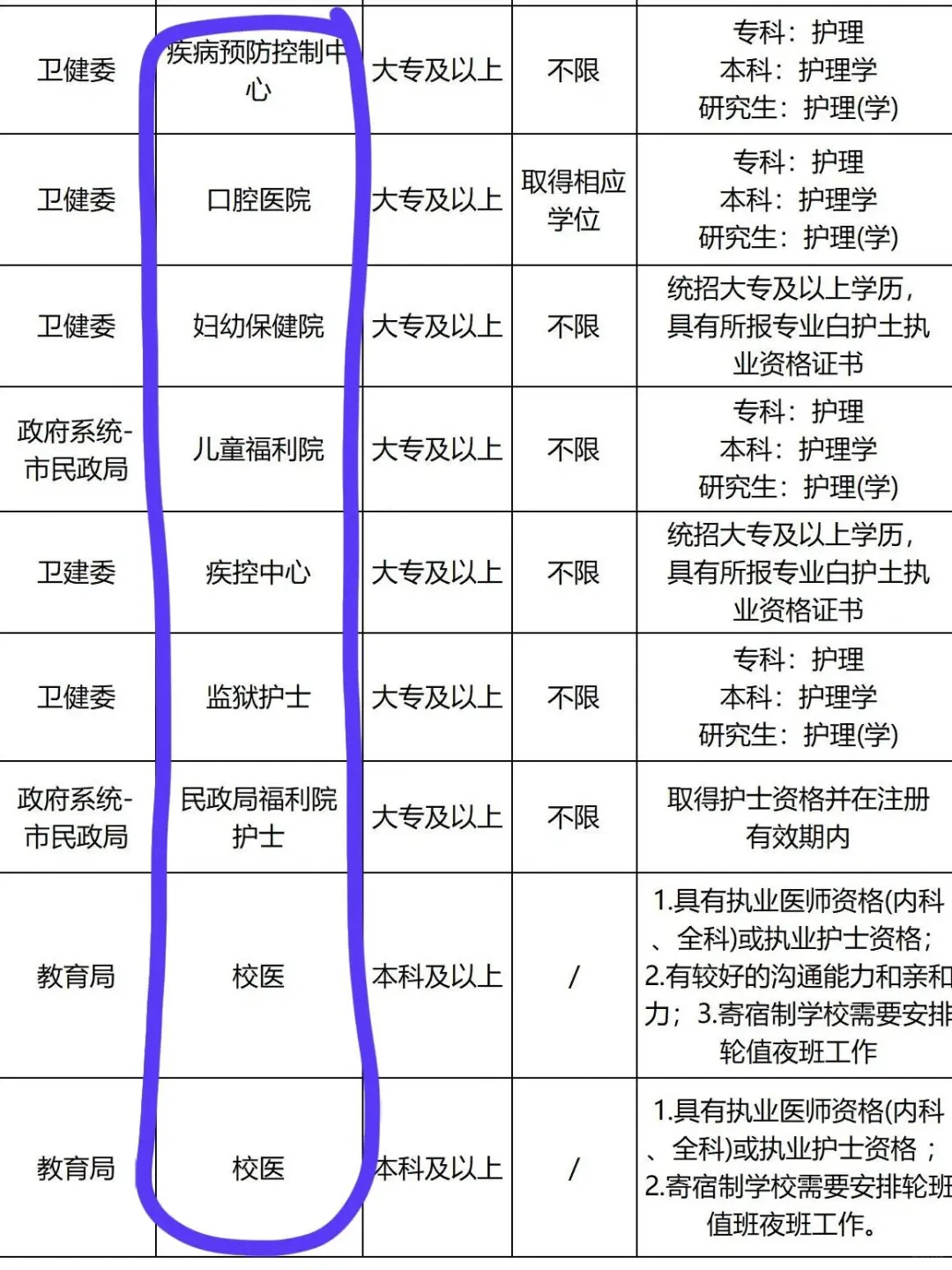 10月8日护理编制招聘岗位(校医 福利院 血站 疾控中心 社区卫生服务中心)\n-\n护理人都收到通知了吗?\n😇😇四川、陕西、广西、山东、重庆、内蒙古、河北、安徽、河南、云南、黑龙江、浙江、福建、江苏、湖北、湖南、辽宁、江西、山西、贵州、吉林、广东…目前很多地区已经相继发出2025最新护理编制岗位招聘公告!!!\n🥳🥳除了医院护士,还有地区会有民政局、护理学教师、卫健委、血站、卫生院、妇幼保健院等等比较优质的岗位!工作轻松待遇好,大专生也有岗位!赶紧冲吧姐妹们!错过可惜了!\n#护理考编 #护士懂护士 #护理专业 #护理 #护理事业编 #护理编制 #护士找工作 #护士考编 #备考护理事业编 #护士