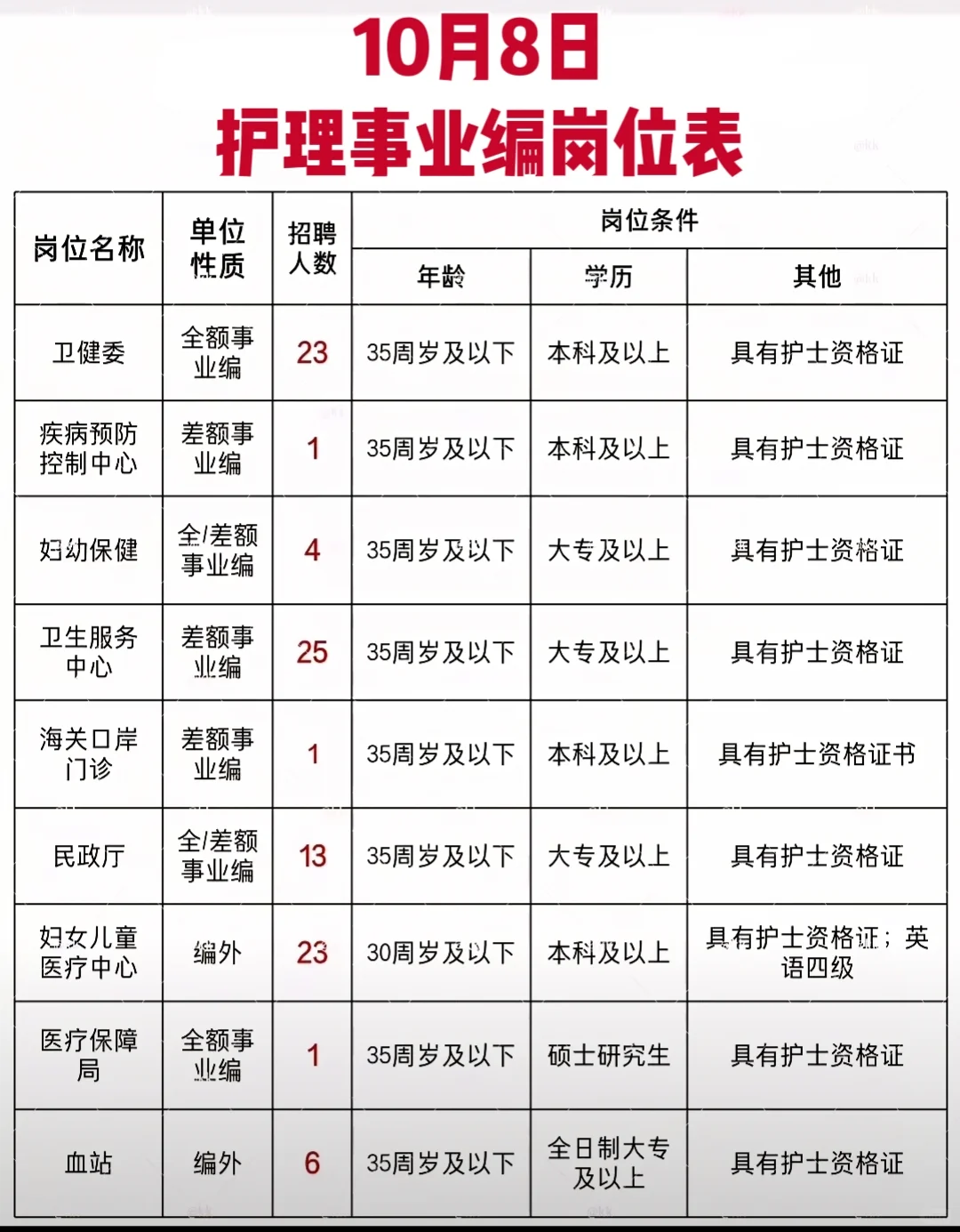 10.8日护理编制招聘岗位(血站 疾控 校医)