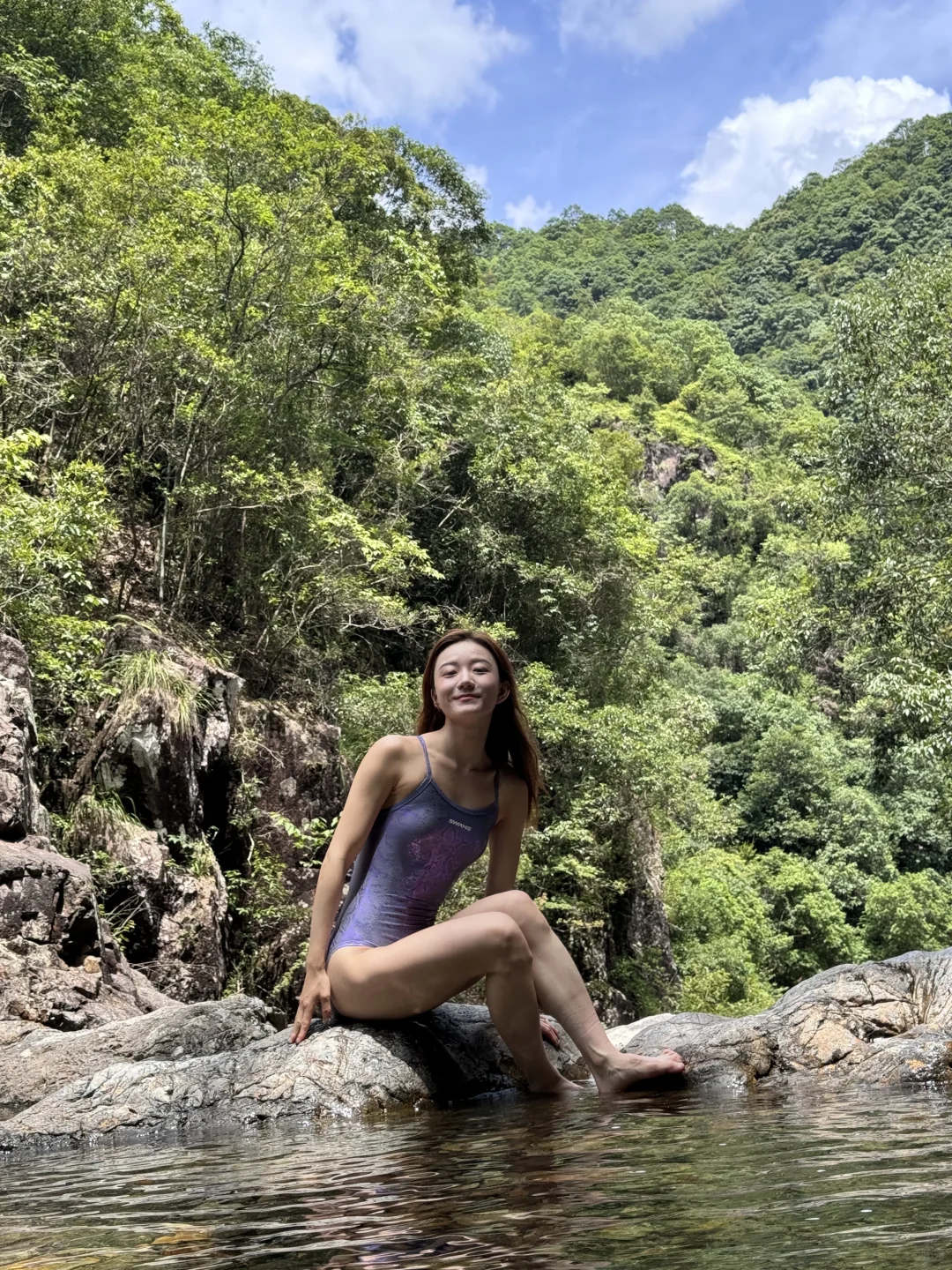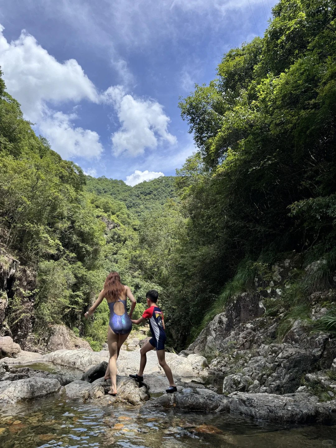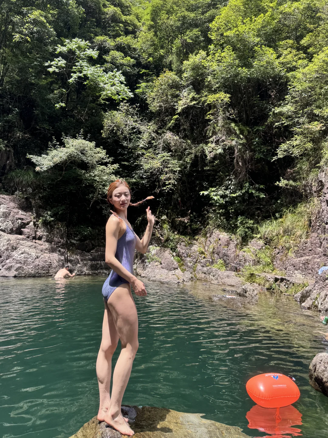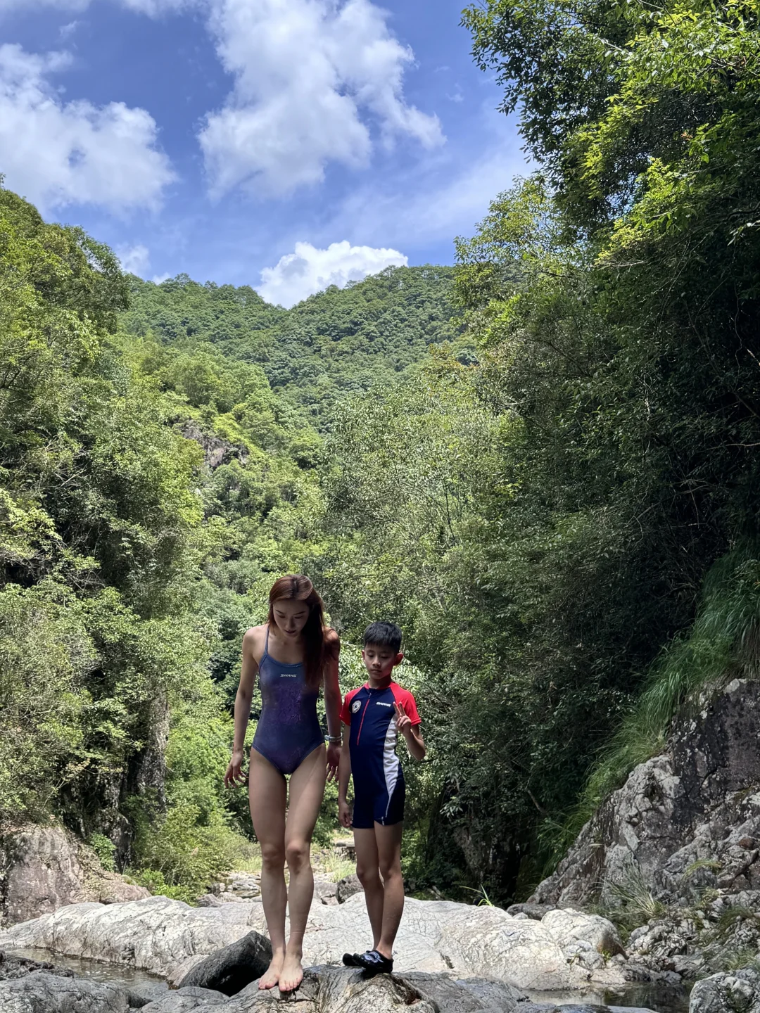 谁啊 穿竞速泳衣去山里溯溪