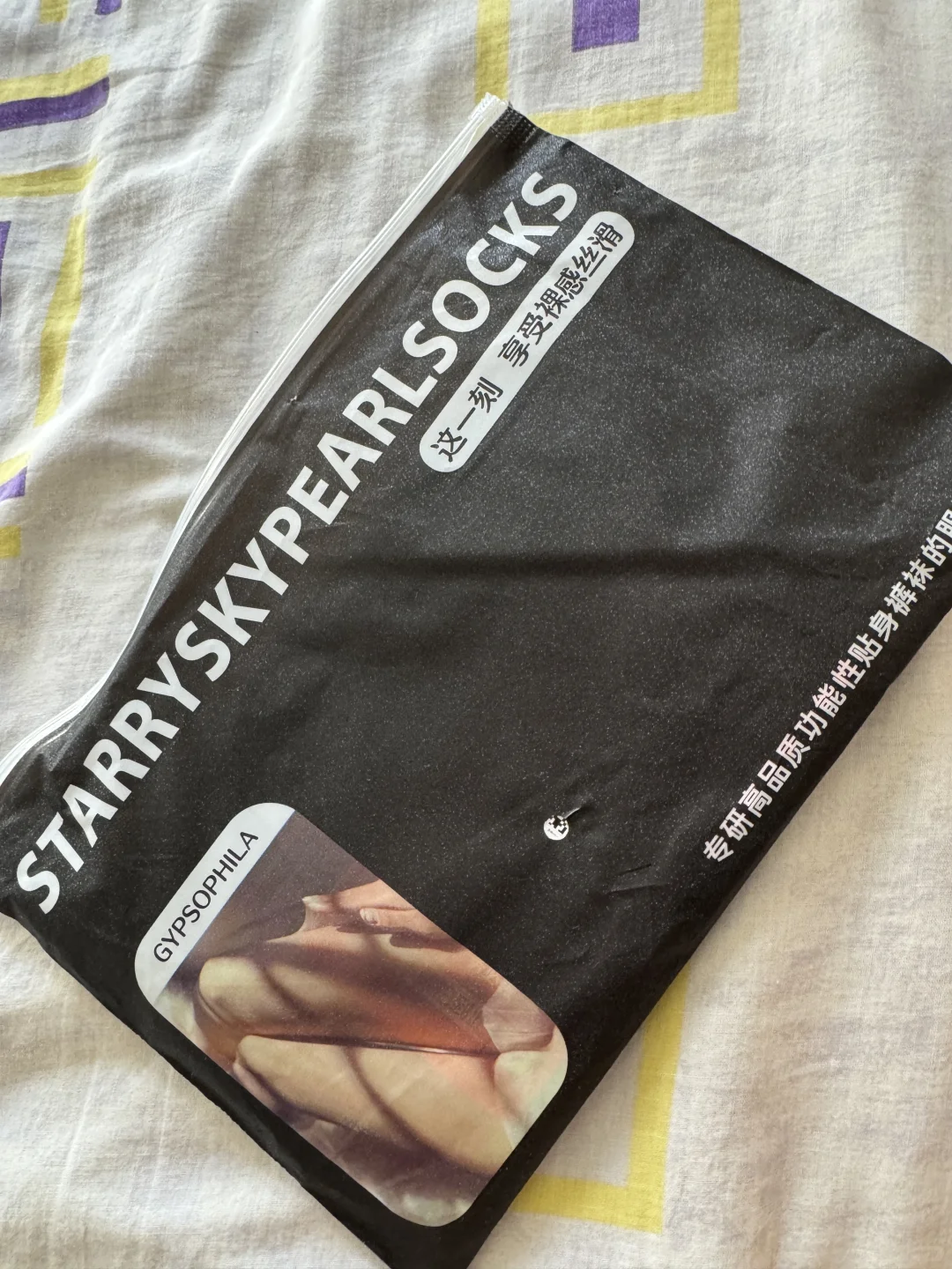韩绢星空丝袜,灰色,某音直播间买的,广告里亮闪闪的,实际很一般。怎么这些袜子我都扯不到大腿根呢?我也不是高个子……