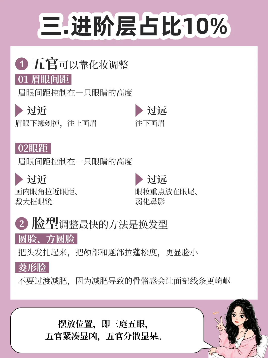 进阶阶段可以关注五官的细节调整,比如眉毛的弧度、眼妆的勾勒,或者通过修容改善脸型。这些小细节能让你的颜值更上一层楼!