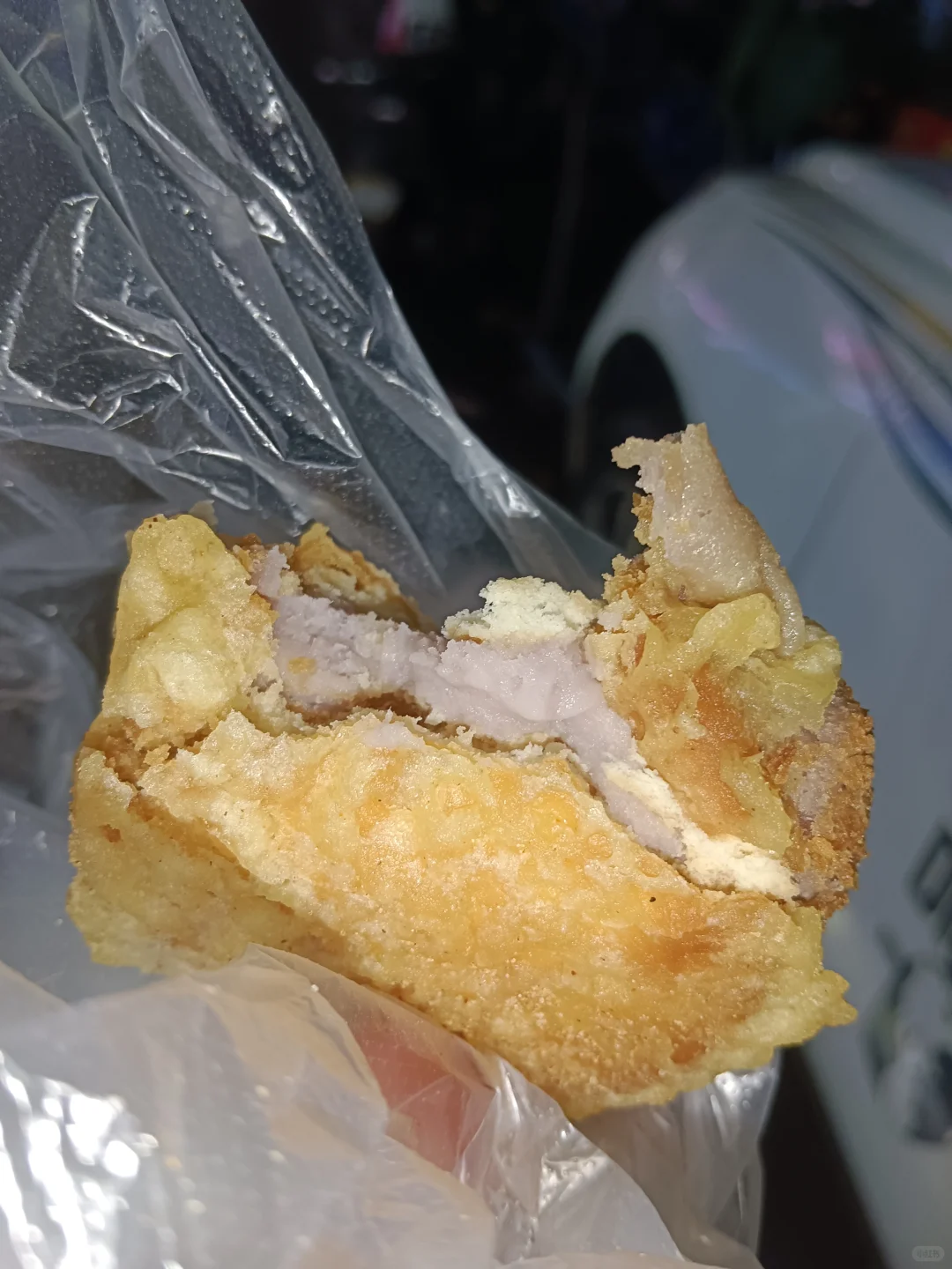 芋泥饼+韭菜猪脚圈\n在龙洞步行街的一个阿姨那上买的,芋泥超级细腻,每一口都能吃到馅,猪脚圈也是tree tree 的,加了椒盐粉和辣椒很香,两个都是三块一个(猪脚圈五块两个),便宜好吃,她家还有很多别的潮汕小吃,准备下次都去试试\n#平价美食 #好吃的小吃 #跟着大学生吃就对了 #藏在角落的美食 #挑战吃遍所有路边小吃 #今日觅食记