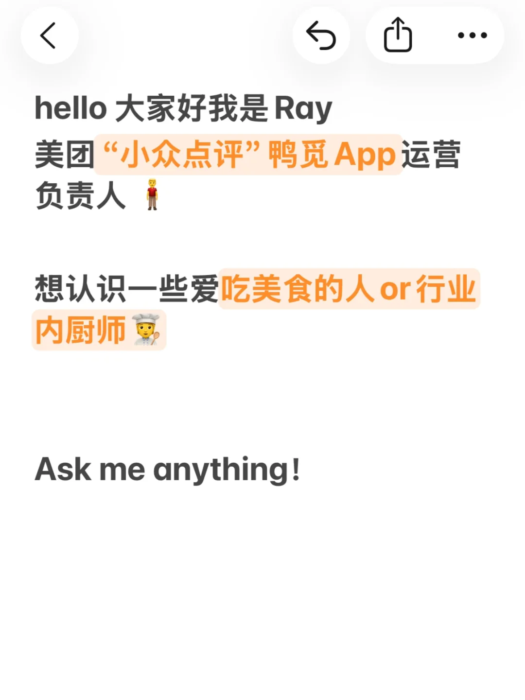 希望和大家聊一聊和美食相关的问题,持续招人ing…\n \n