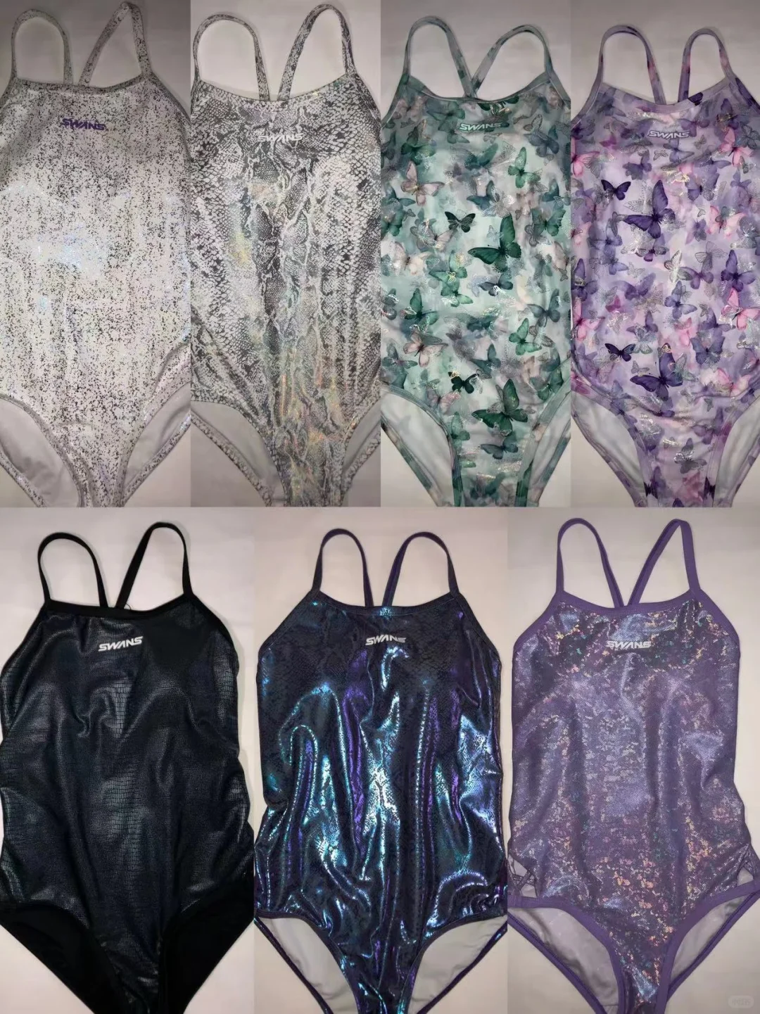 本鱼皮爱好者,终于收集全swans动物系列了,买了这么多swans的泳衣,浅浅总结一下\n1. 紫蟒和紫水晶3月份入的,买回来游了二十多次,水下也很闪,质量还行,几乎没怎么褪色。最近刷到有姐妹说紫蟒褪色的。给新手科普下:机洗滚筒卷着洗会损坏泳衣弹力纤维,洗衣液也会腐蚀泳衣表层。最好最简单就是泳衣内里翻出来清水冲洗。\n2. 紫水晶这件侧边镂空做的很妙,当时我在网上搜了好多素人和博主的图,有很多类似的仿版做的都很显屁股大,就是看着屁股很亮的一大坨,特别难受。但紫水晶的这个镂空就做的刚刚好!炒鸡修饰臀型\n3. 黑天鹅这件最近才入,是动物系列里最惊喜的。表面是很细腻的鳄鱼纹,摸起来很柔软舒服,让我想起来曾经有幸摸过闺蜜的爱马仕包。个人感觉:弹性、柔软度大于紫蟒,而且黑色是真的显瘦!七选一的话我可能会选这件和紫蟒,没办法,旧爱和新欢都要拿下。\n4. 5. 想穿白色泳衣,但是怕透的可以试试白天鹅或者白蟒,水下不会透,质量没问题。\n6. 7.可能是上年纪了,开始偏爱花花绿绿的泳衣了。小蝴蝶入了最热门的这两个颜色,个人感觉绿色比较显白,尤其是下水非常清透。本来以为swans的泳衣都很保守,没想到小蝴蝶直接整了个大露背,穿上这个爽啊,而且很显背薄荷后背线条!\nswans官方看见的话,麻烦私信我打钱哈,实在不行再送我点泳衣和泳镜,我馋女武神泳镜很久了\n#泳衣#竞速泳衣#泳衣分享#游泳减肥#游泳#swans紫蟒泳衣#swans紫水晶泳衣#swans黑天鹅泳衣#swans泳衣#swans小蝴蝶泳衣#学游泳