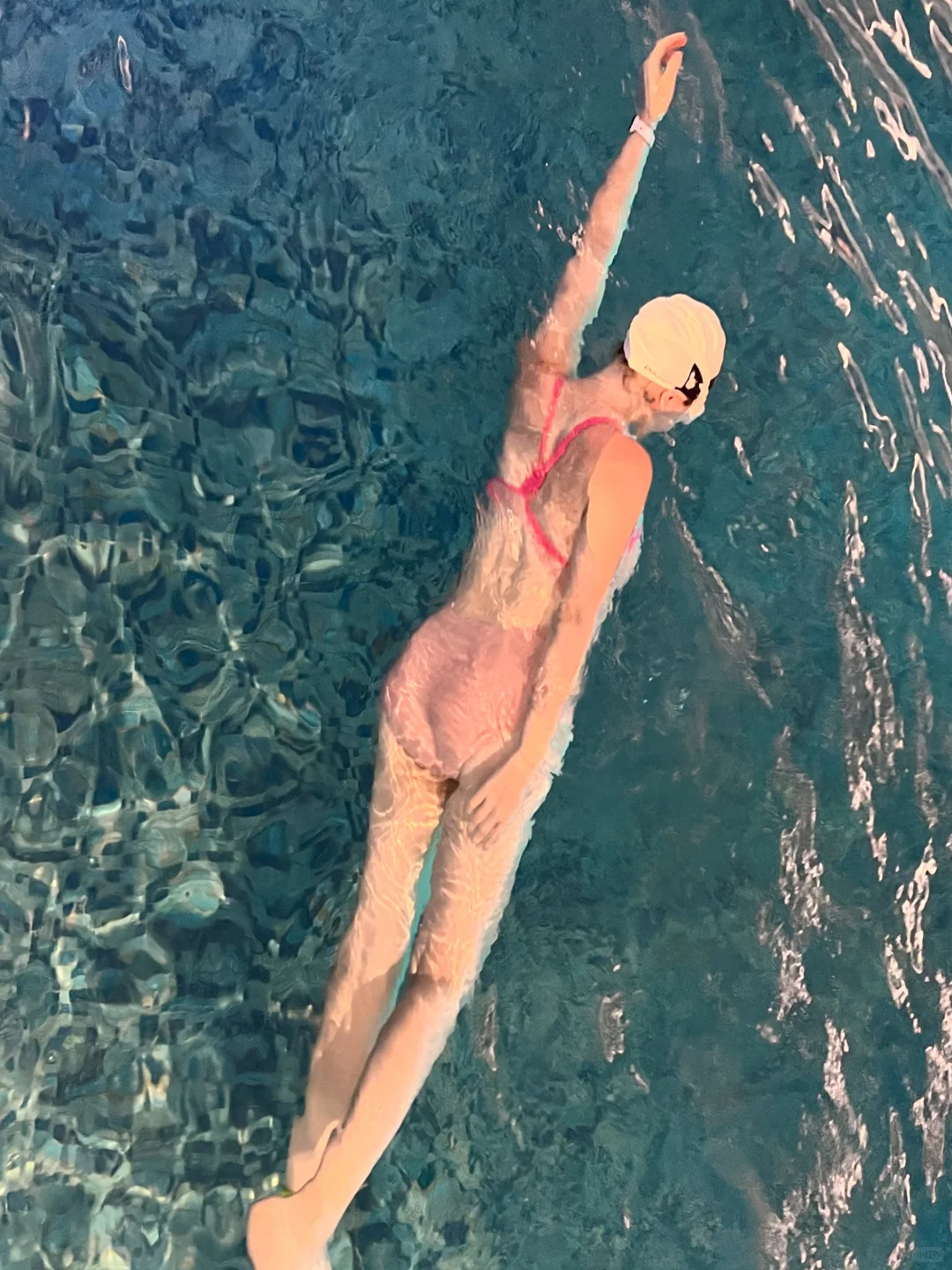 大家好呀\n我是舒芙蕾\n30+;未婚未育\n从宇宙大厂裸辞进入教育行业,主&副年入30w+:\n爱自由潜,爱网球\n在这里和你分享我的经历与成长\n-\n8月的成都热到什么程度呢?\n打网球的人约球都约到早上6点\n我不信\n早上9点出现在天府网球中心\n结果就是晒红了\n-\n夏天的早上适合的运动\n果然还是游泳\n戴上泳镜泳帽\n一头扎进水里\n把残留的困意和工作压力全冲走\n-\n星级酒店的泳池好处是人少\n坏处就是灯光很暗\n这种环境就很适合穿浅色泳衣\n蔷薇粉我很爱\n尤其配上白色泳镜和小猫咪泳帽\n穿上瞬间被美到\n-\n紧紧裹着身体曲线却不勒肉\n划水时一点不兜水\n阻力小到感觉自己能游得更快了\n双层内衬也很贴心\n转身打水都稳稳当当\n完全不用担心走光\n-\n每次在水里的时候都会想\nLife is like swimming\n刚开始总想着和别人比速度\n后来才明白\n每个人的节奏不同\n不用强迫自己追赶别人的浪花\n沉下心来感受身体的力量\n找到属于自己的频率\n反而能游得更远更轻松\n-\n就像水流永远在寻找新的方向一样\n不必被世俗的时间表制约\n在热爱的事情里投入热情\n-\n开始自己学会“游泳”,\n自己“游回”岸边,\n才开始自我故事的篇章\n#夏天用游泳开场#我和游泳结缘 #游泳#泳衣拍照 #游泳打卡 #竞速泳衣 #泳衣推荐#泳衣分享 #粉色泳衣#pulassi泳衣