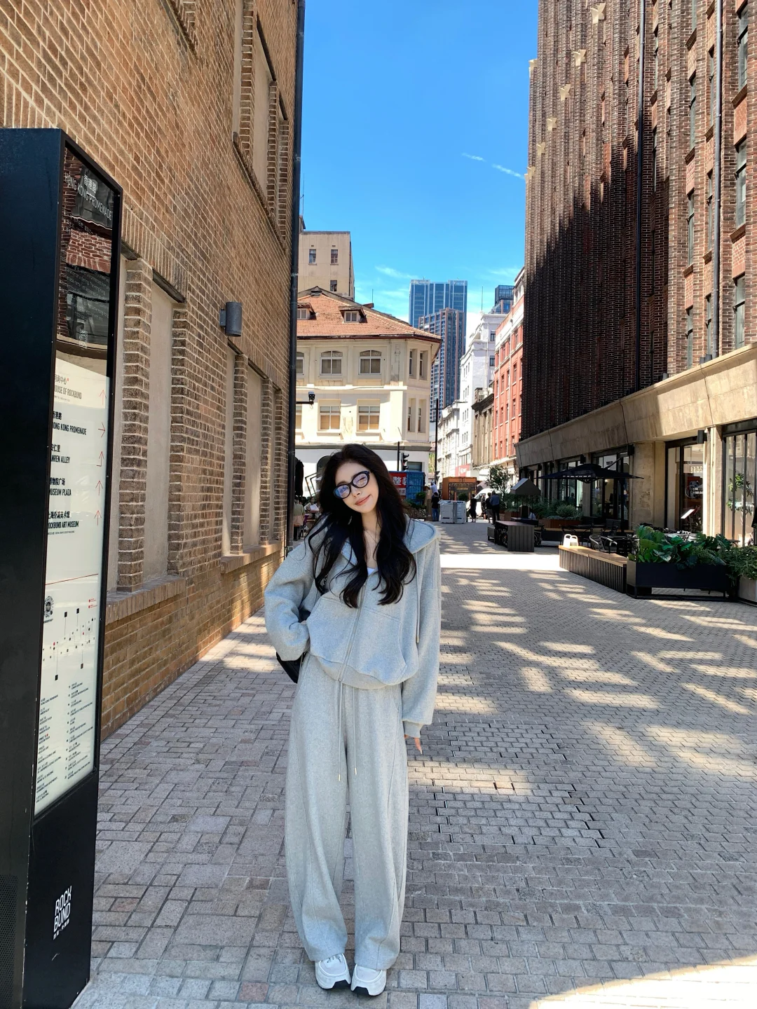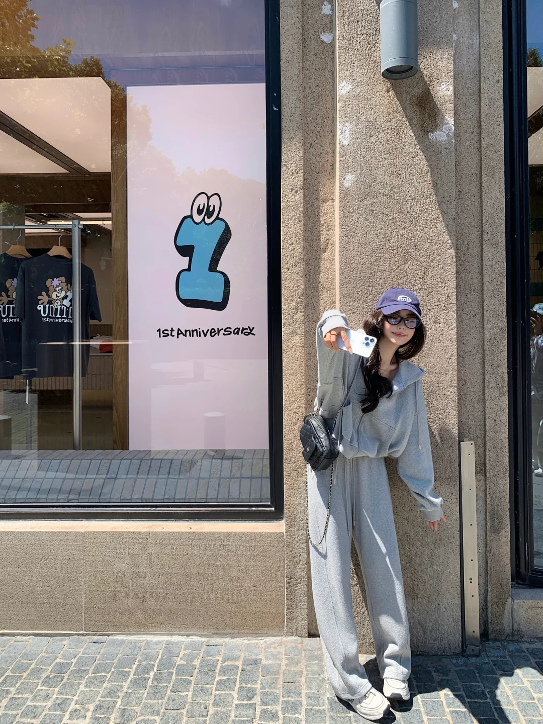灰色卫衣套装一整个长在我审美上\n韩女出街即视拿捏🫰🏼\n \n