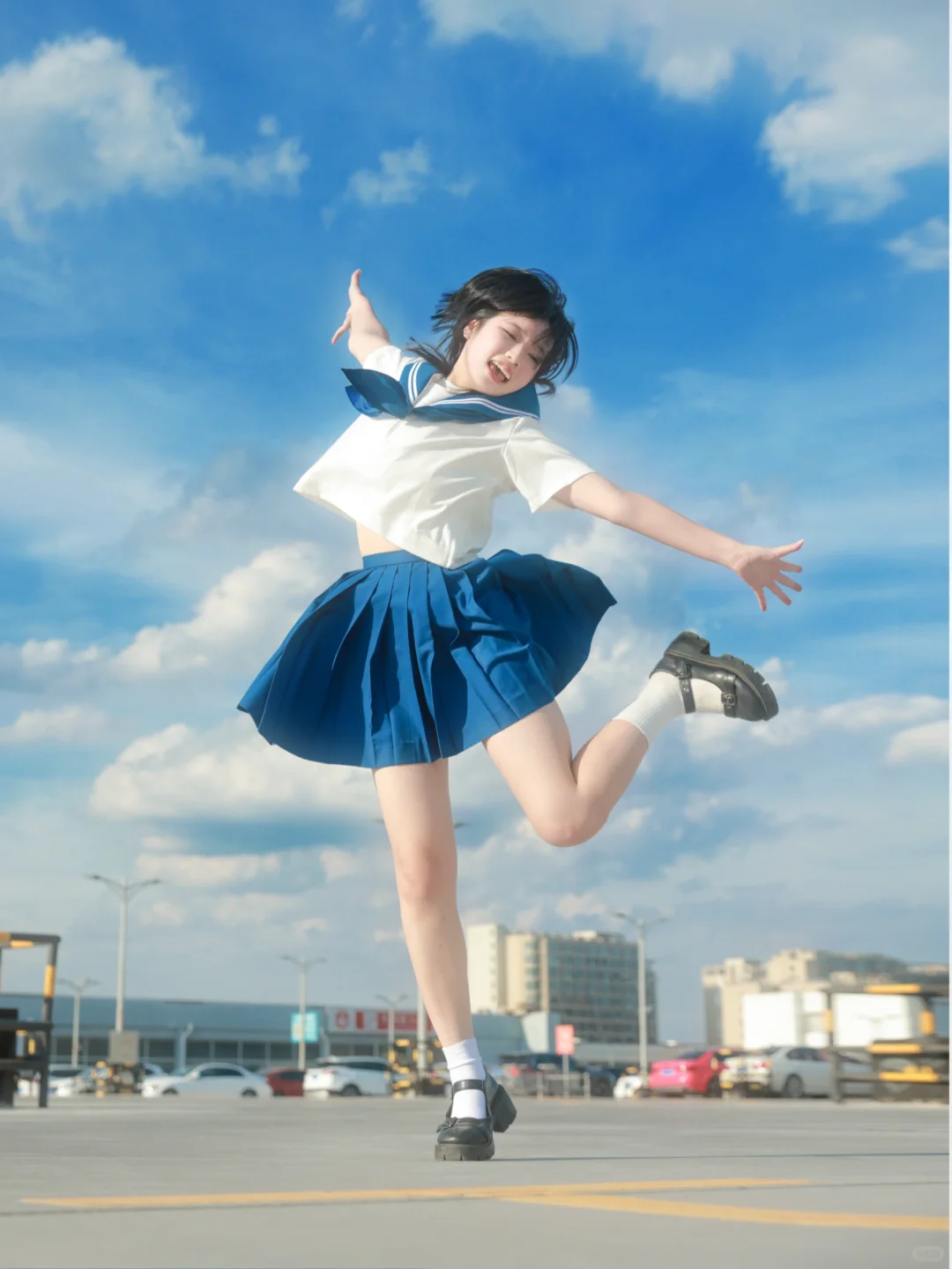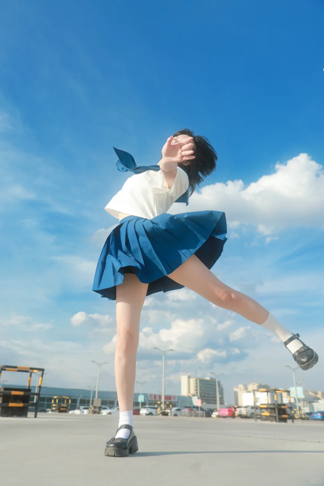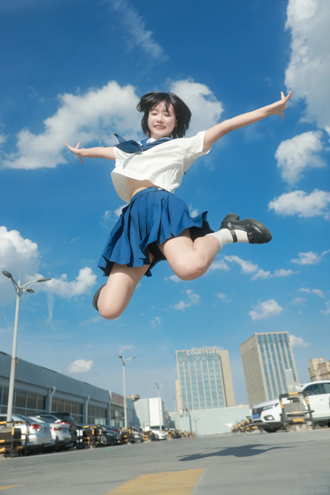 去年夏天拍的超级喜欢的一组\n少女、制服和夏日晴空\n好像动画海报!\n其实应该还有不少好看的图没有修出来!等空下来我再去翻翻…\n \n#来拍照了 #氛围感 #生命力才是最好的滤镜 #生命力在于腾空的那一秒 #有感染力的照片 #夏天 #比美照更有杀伤力的是 #拍照姿势 #少女感