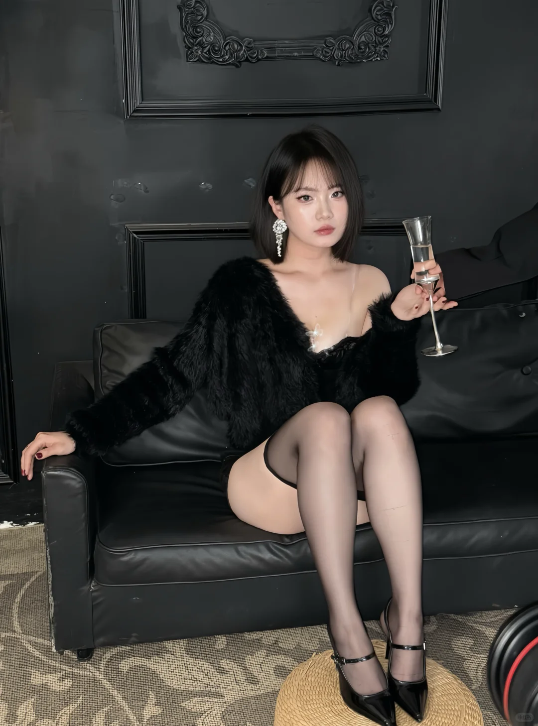 今天是紧身衣和毛呢大衣🖤