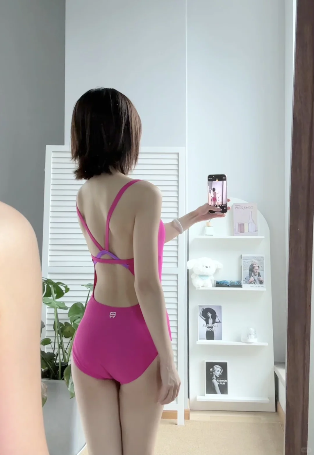 救命!这玫红色泳衣也太显白了吧