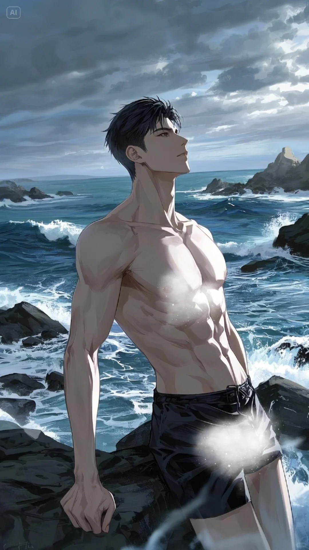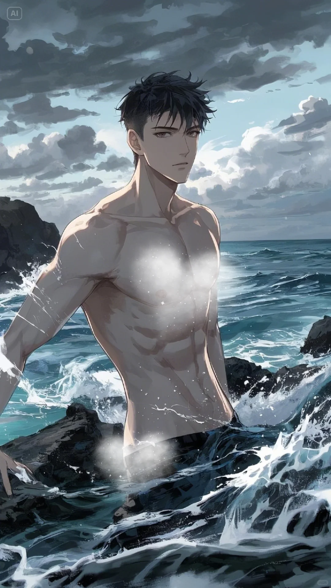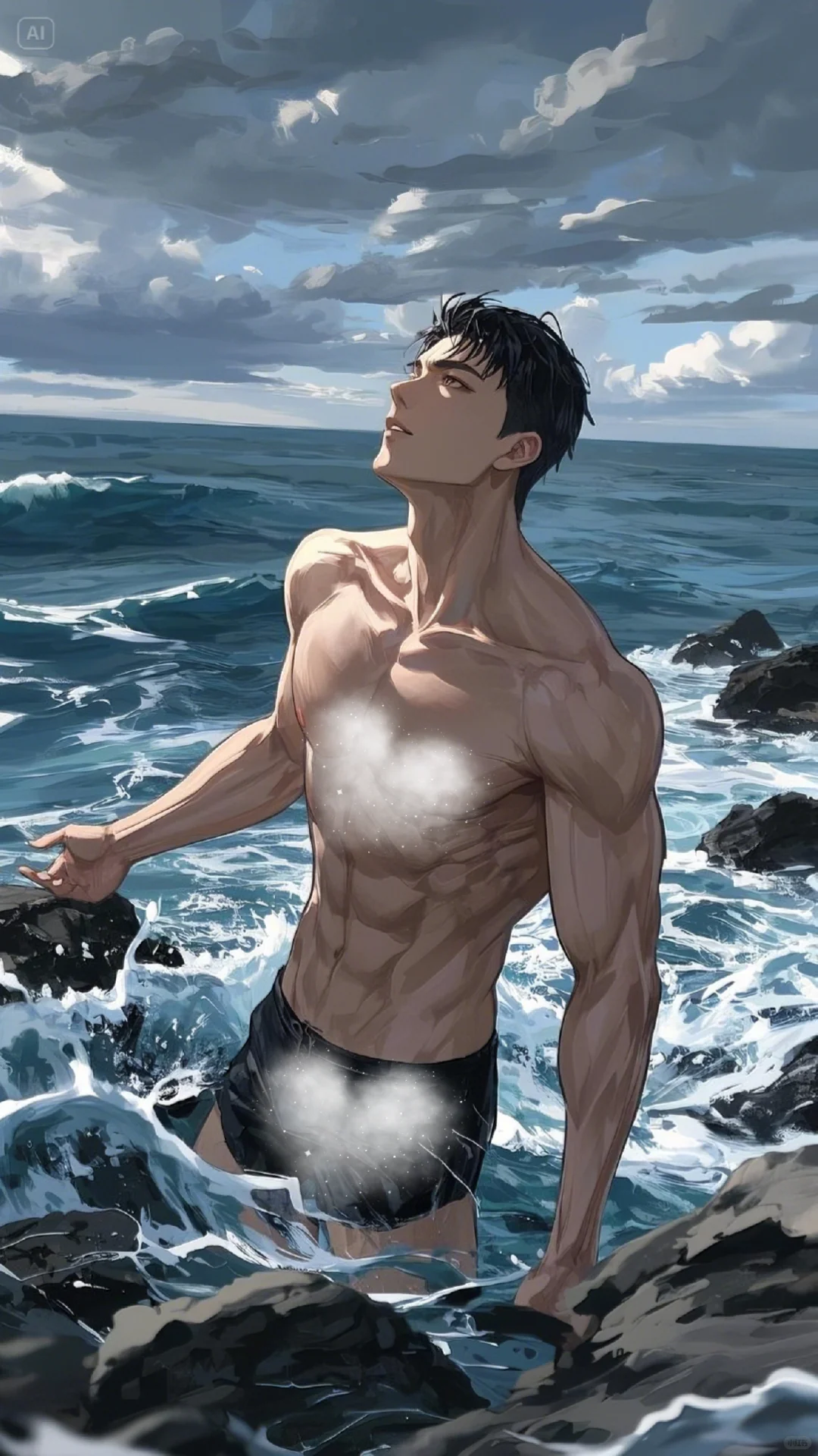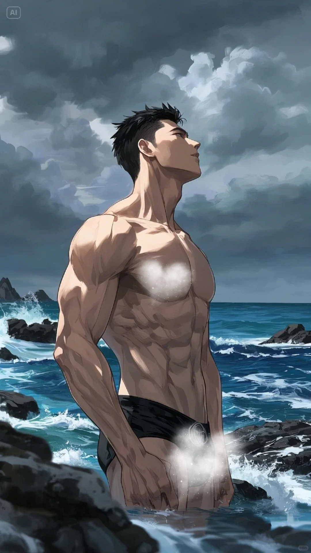 ·ai·关键词:海边游泳 阴雨蒙蒙 大海浪潮\n