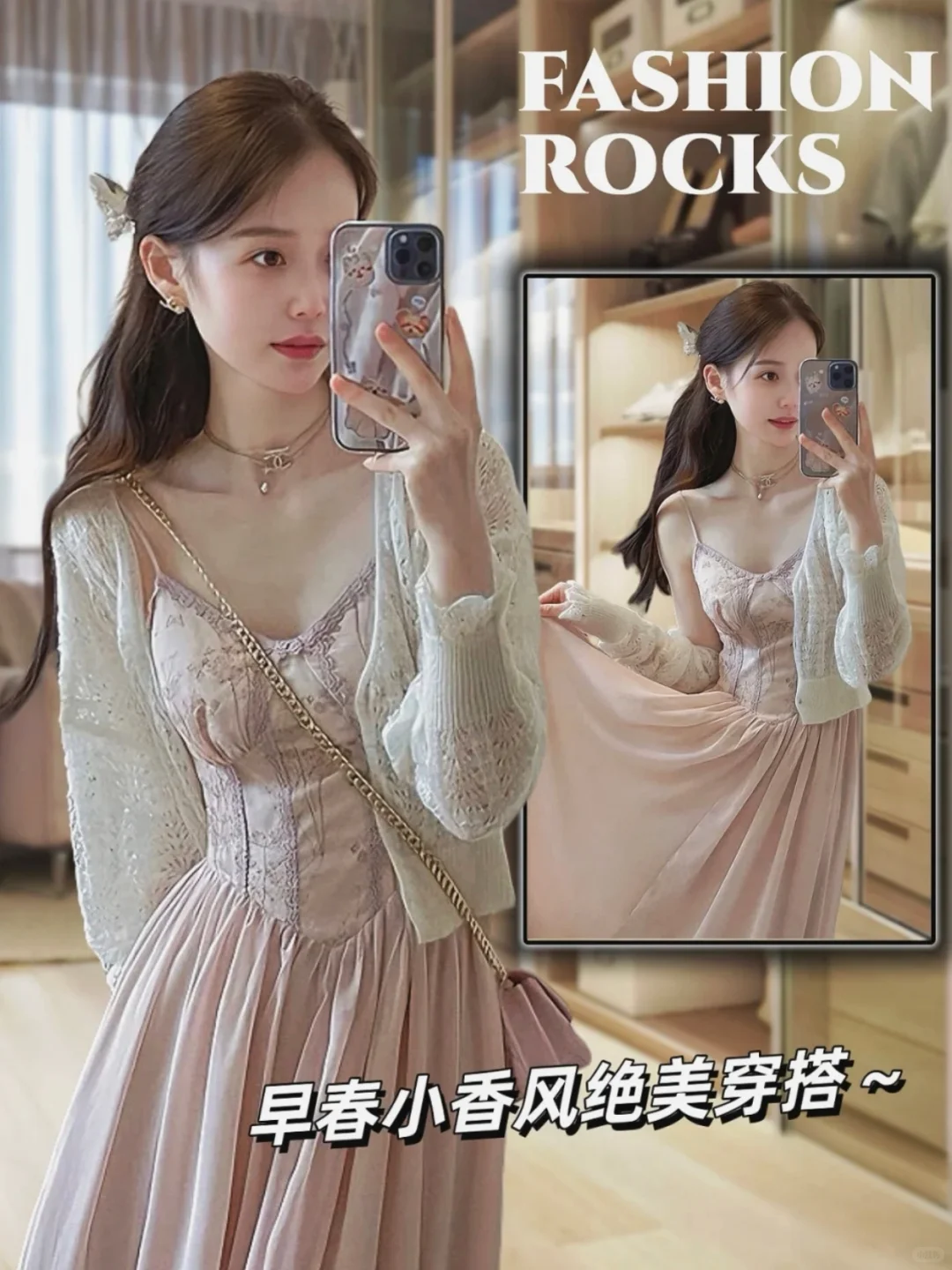 精致的法式小香风吊带裙来咯~甜美气质😍