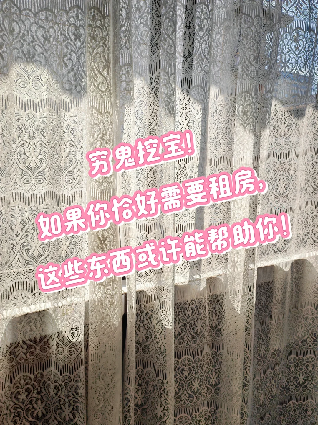 从开始租房到现在也已经三四年了,\n每次租房都需要大采购一番\n下面是我买过的比较好用的租房神器,\n主打一个便宜好使不心疼!\n供姐妹们参考!!!\n🙆🙆🙆🙆🙆🙆\n今天主要讲窗帘相关\n1.蕾丝窗帘🌸\n蕾丝窗帘主要起到一个隐私的作用,第一要义是透光不透人,以免房间太闷,综合考虑下来我选了厚蕾丝窗帘。这里一定要给大家安利一家并夕夕店,也是在红薯上被安利的,具体店铺姐妹们看图片哈!我买的白色随机厚款(次品)窗帘,5米长度,只要12.9!!!真就一杯奶茶钱,可以拥有一大块窗帘布料!而且说是次品,但我买的窗帘没什么泛黄之类的问题,收到货真的超级惊喜!\n2.全遮光窗帘🌸\n这款窗帘真的基本不透光,一拉上房间就乌漆嘛黑,我每晚睡觉都会拉上它,然后安然入睡。不过,这款可能就是不那么透气,建议平时都拉开,睡觉才拉上,而且这款是科技涂银布料,会有点儿味道,拿到需要散散味。这个没有推荐店铺,因为我买的是1688的,店铺也放在图片里了,价格确实很便宜,但这家卖净布,整布裁剪,有运费,好像还要自己配挂钩啥的,感觉不是那么方便,建议姐妹们可以去并夕夕找配套的。\n3.窗户静电贴膜🌸\n虽然不是窗帘,但也和窗户相关,顺便一起说了。这也是让我很惊喜的一个品!这款的主要作用是打造隐私空间,尤其适合那种面对走廊或楼间距很小的房间。\n操作方便,用水就能贴上【不过需要一定的技巧,贴不好会有很多气泡,姐妹们可以问店家或者红薯上搜搜技巧】,可重复利用,好清除,总之优点多多。我买的是磨砂款、百叶窗款和彩虹马赛克款。前两款基本上透光不透人,并且只要不是太挨近窗户的话,都不太透人影,后一款透光也略有点透人,凑近能模模糊糊看到房间外面的样子。在美观度上,磨砂中规中矩,百叶窗很有格调,很ins(我比较喜欢),彩虹马赛克在阳光下很漂亮,流光溢彩!综合来看,隐私性方面,百叶窗款≈磨砂款>彩虹马赛克款;美观度方面,百叶窗款≈彩虹马赛克款>磨砂款。推荐店铺是我多个平台比较后,买下来觉得划算的,具体见图片哦🧡~#租房#大学生 #挖宝 #租房日常 #好物分享 #窗帘 #拼多多 #便宜 #蕾丝 #实用好物