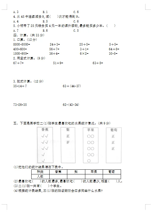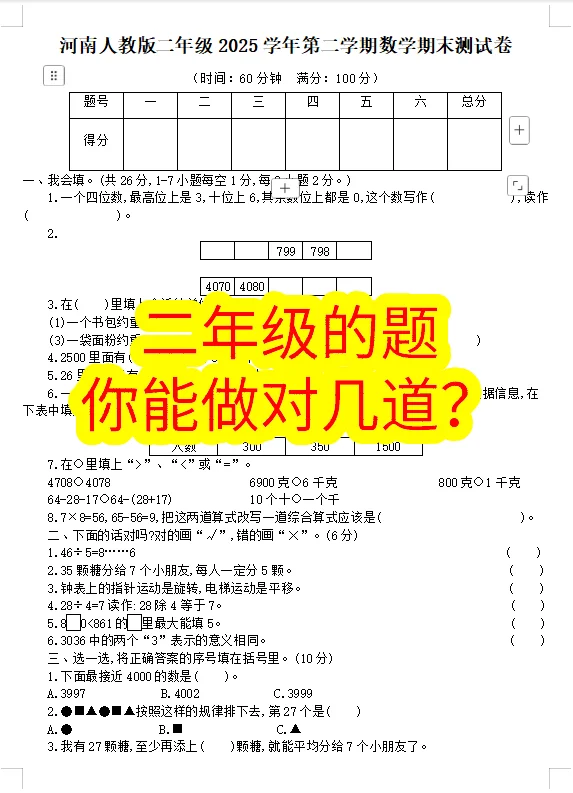 不是小看你,二年级的题。你能做对几道?