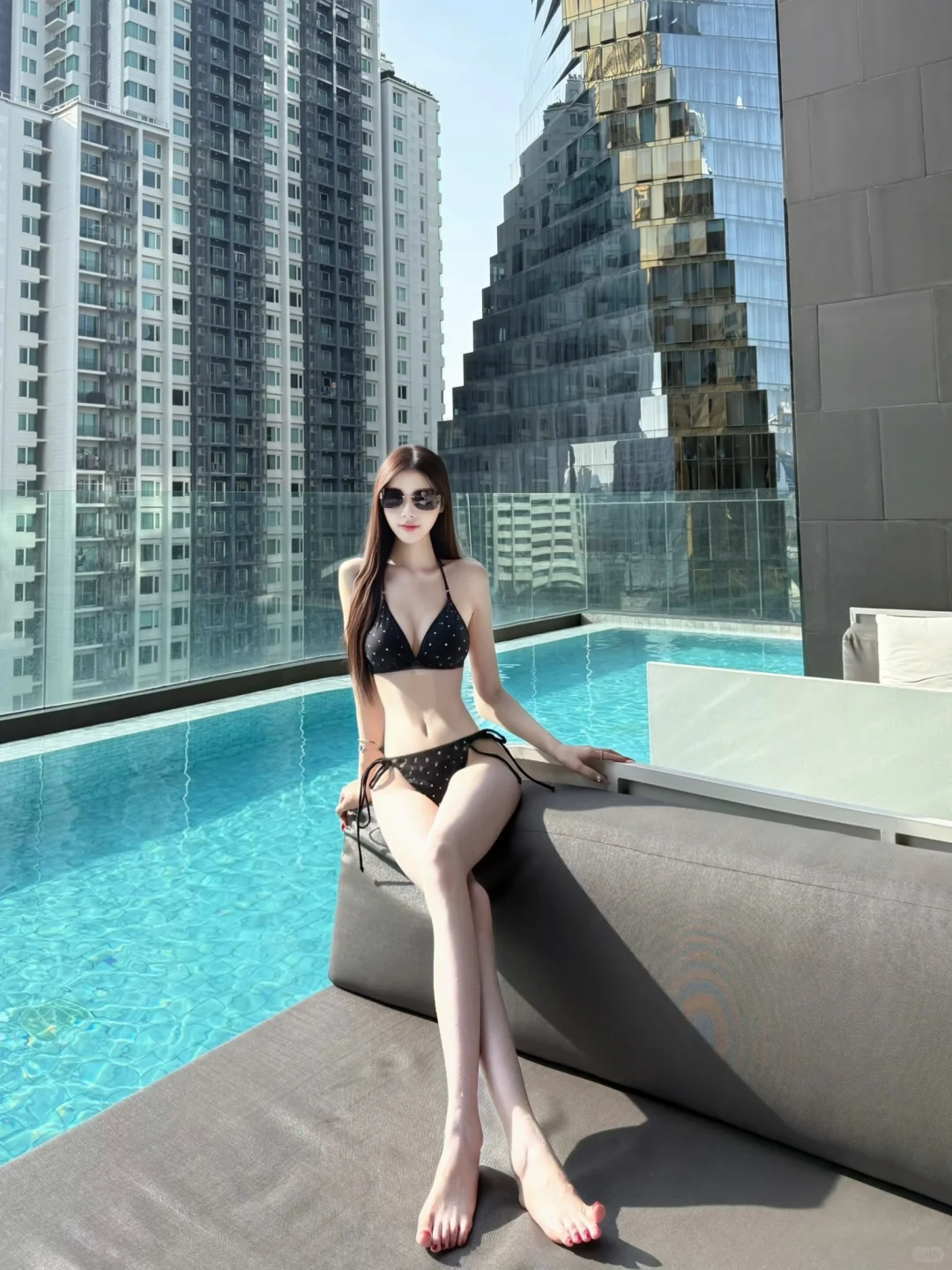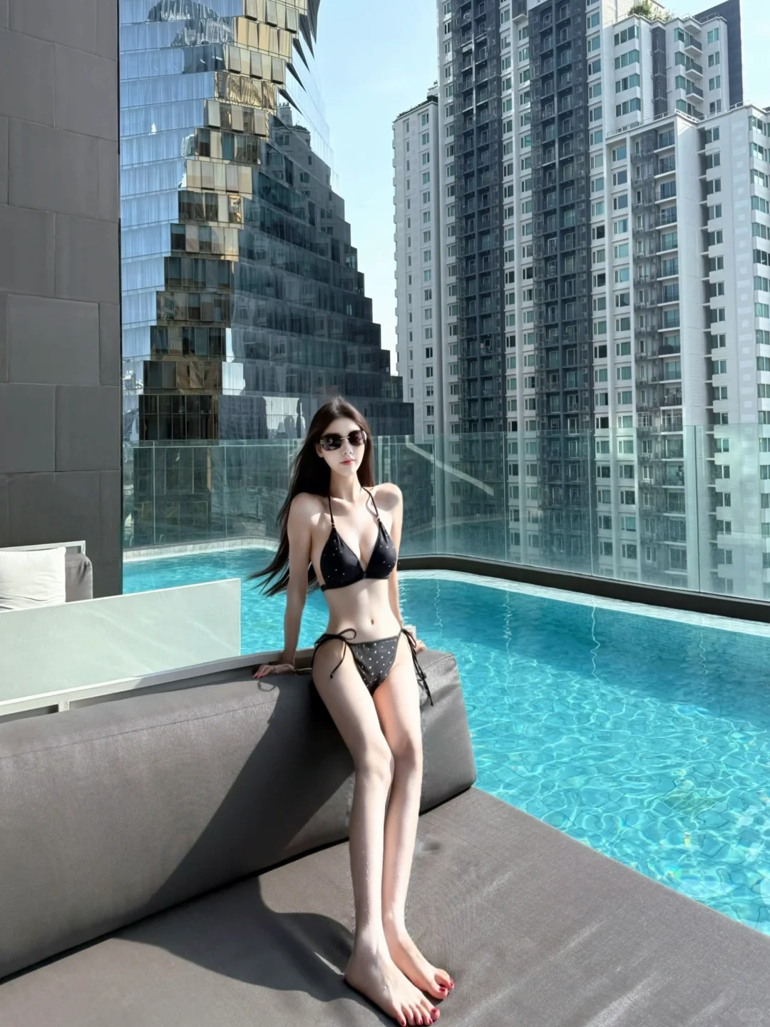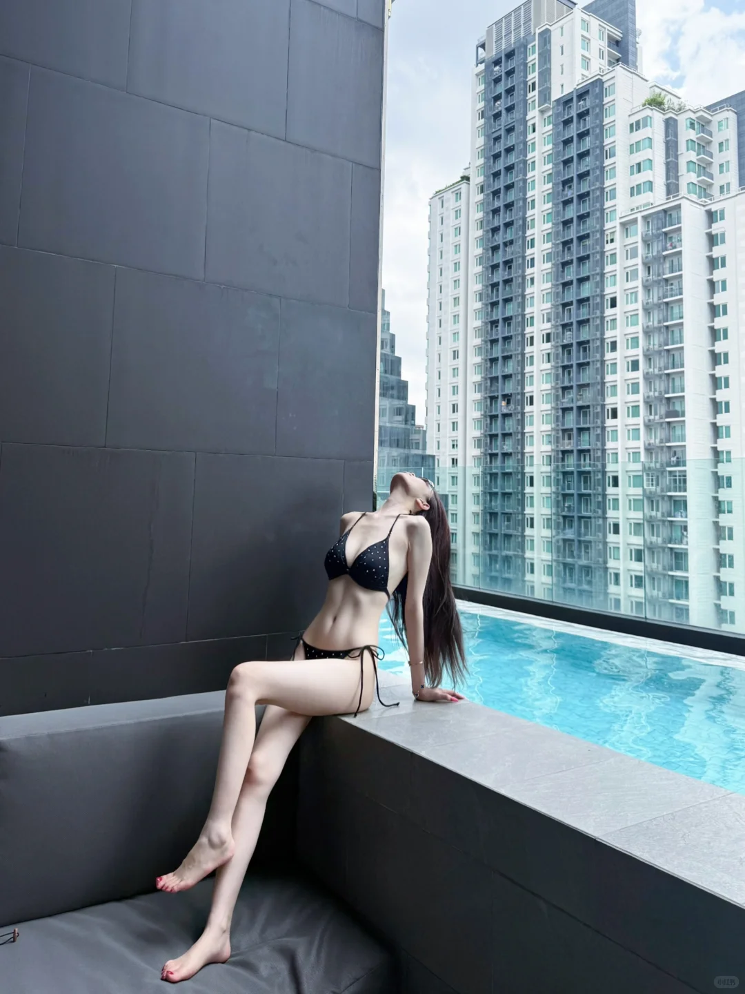 这里需要入住酒店刷卡才能上去拍照哦,一晚加税费1000多,当时被这个泳池吸引才入住这个酒店的,建议下午4-5点的时候上去拍,有阳光打在身上很好看,很多网红小姐姐拍照