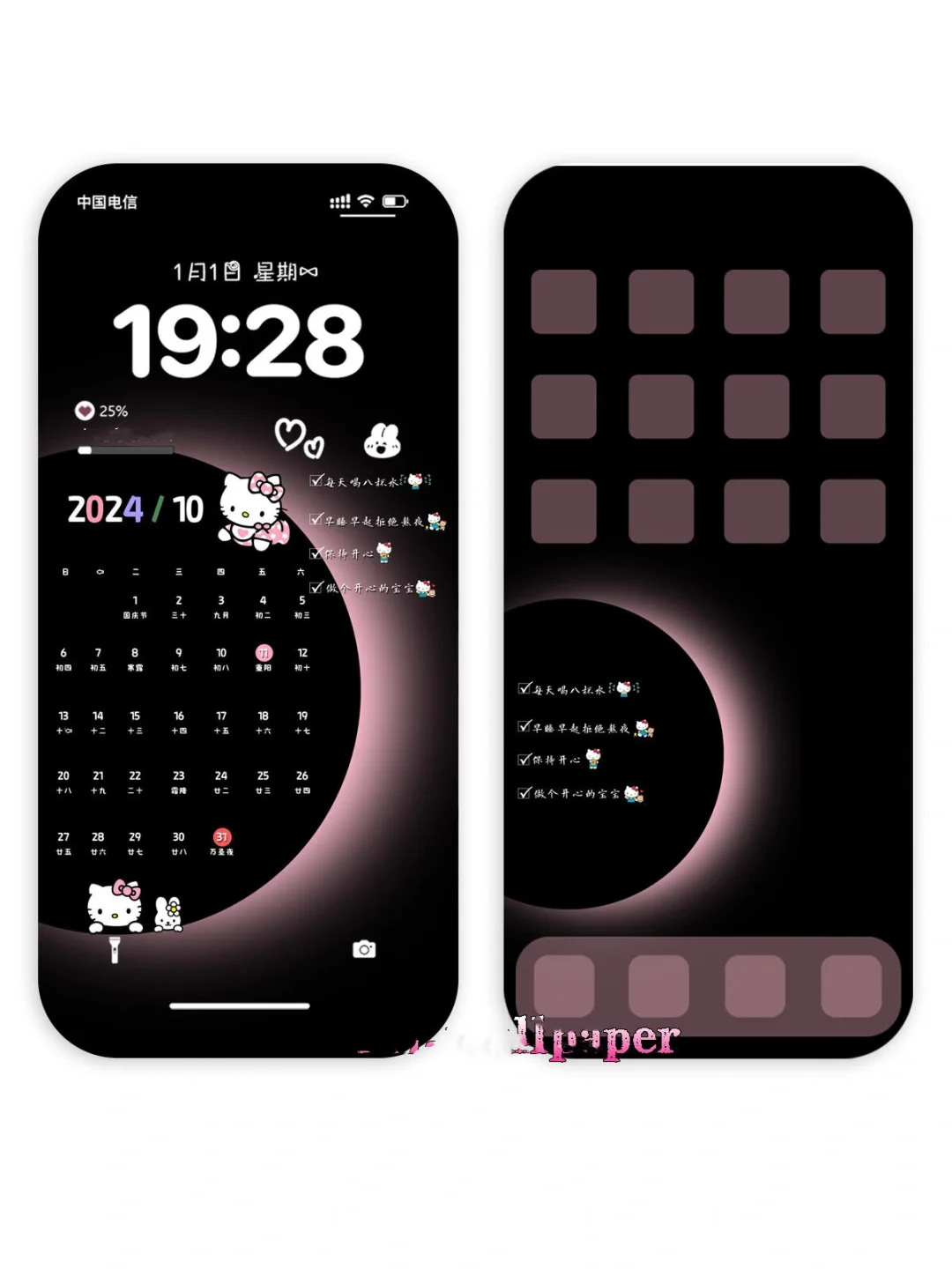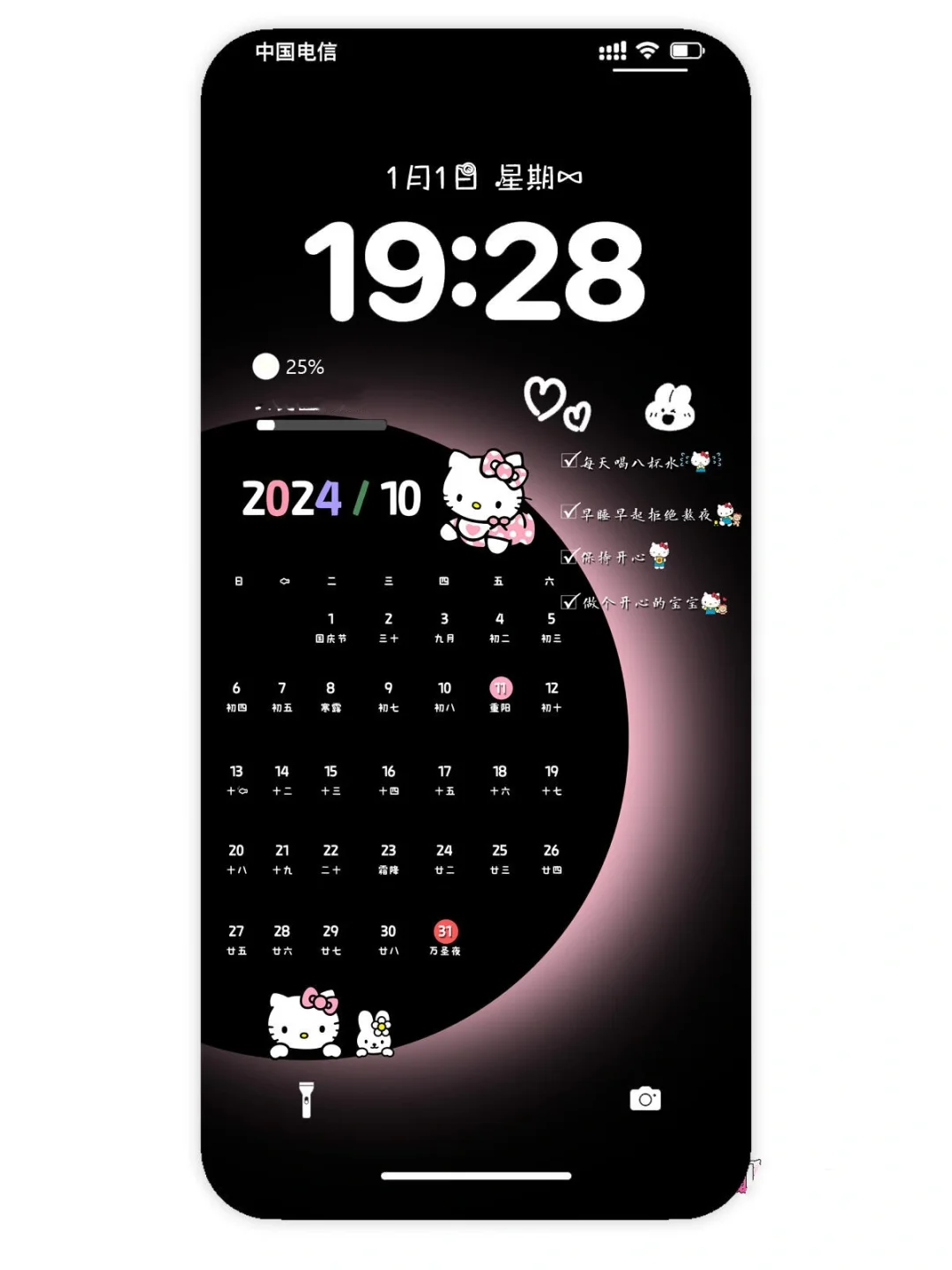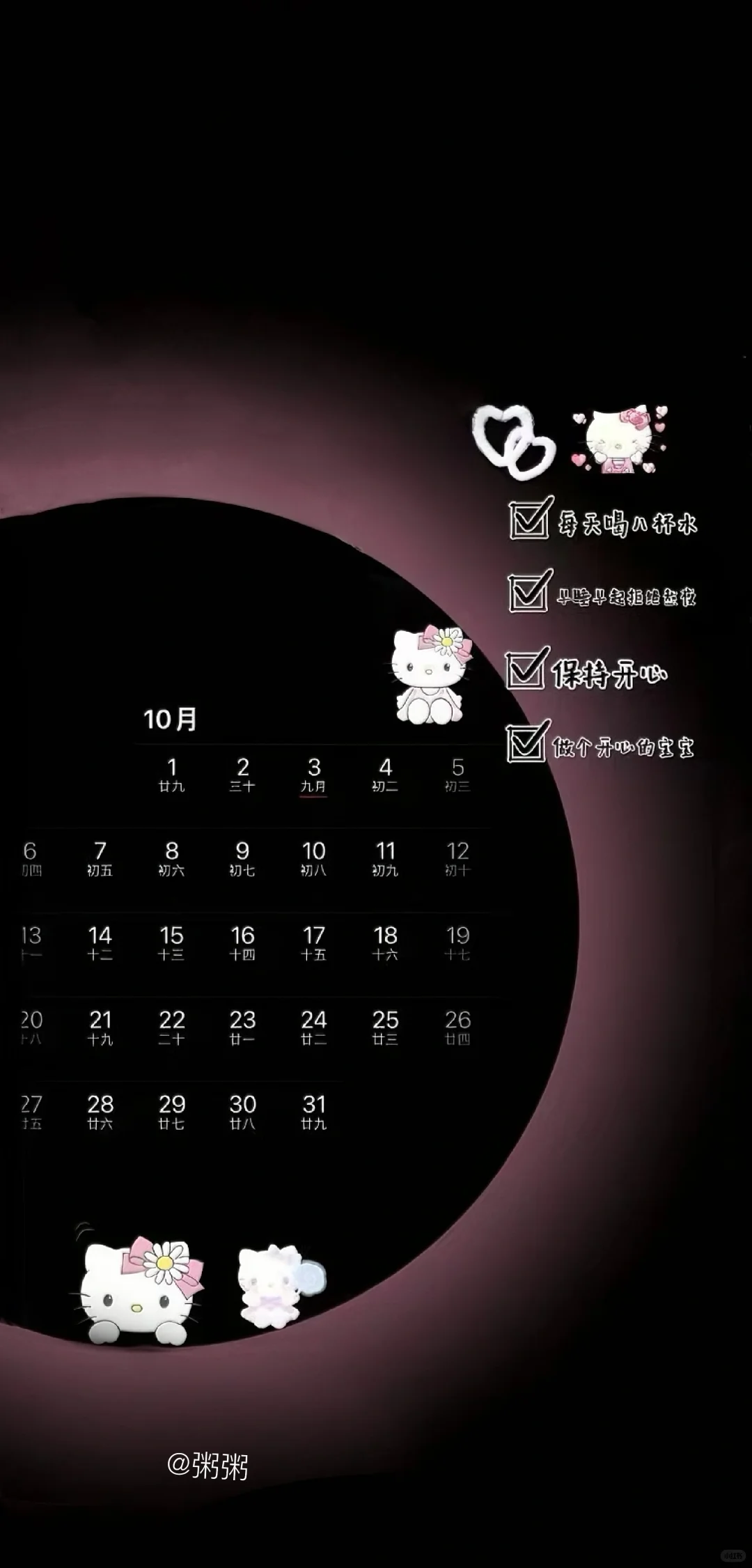 10月份凯蒂猫日历壁纸|渐变壁纸