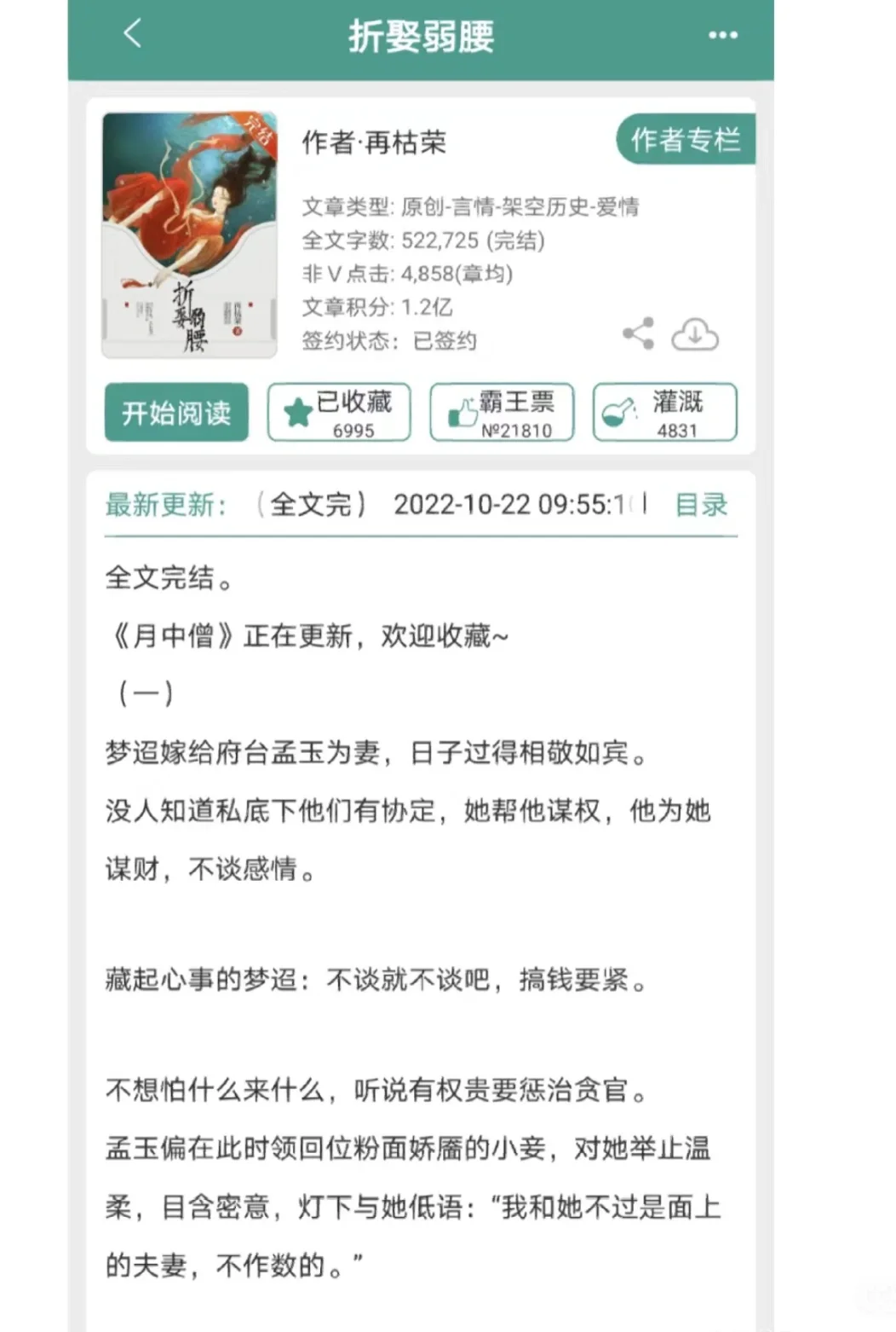 看了同作者的娇养祸水,是继子与未成礼的小妈之间的拉扯,文笔真的巨好,剧情也顺畅,于是……种草了!那么开一本折娶弱腰吧,嘛呀,我真是高看我自己了,超疯批的背德啊,难怪人评论说再枯荣在背德文赛道上一骑绝尘!\n这本是一个帮男二升官的“仙人跳”局,结果女主沦陷了,揽着风情万种官夫人的头衔到处拉皮条帮男二升官,男二更是眠花卧柳,心里深爱女主却勾三搭四娶小妾,男三娶了女主妹子,你以为这就完了?NO,人家目标确是爱上了丈母娘,你以为又完了?No,丈母娘还养小白脸!还有那个女主妹子也是勾引大臣,还和男主姐夫勾搭上了,就是这么乱,文中最清白的也就是男主了剧情还是很丝滑的,我第一次看这种背德,哈哈哈哈,尴尬得脚趾能抠出两室一厅