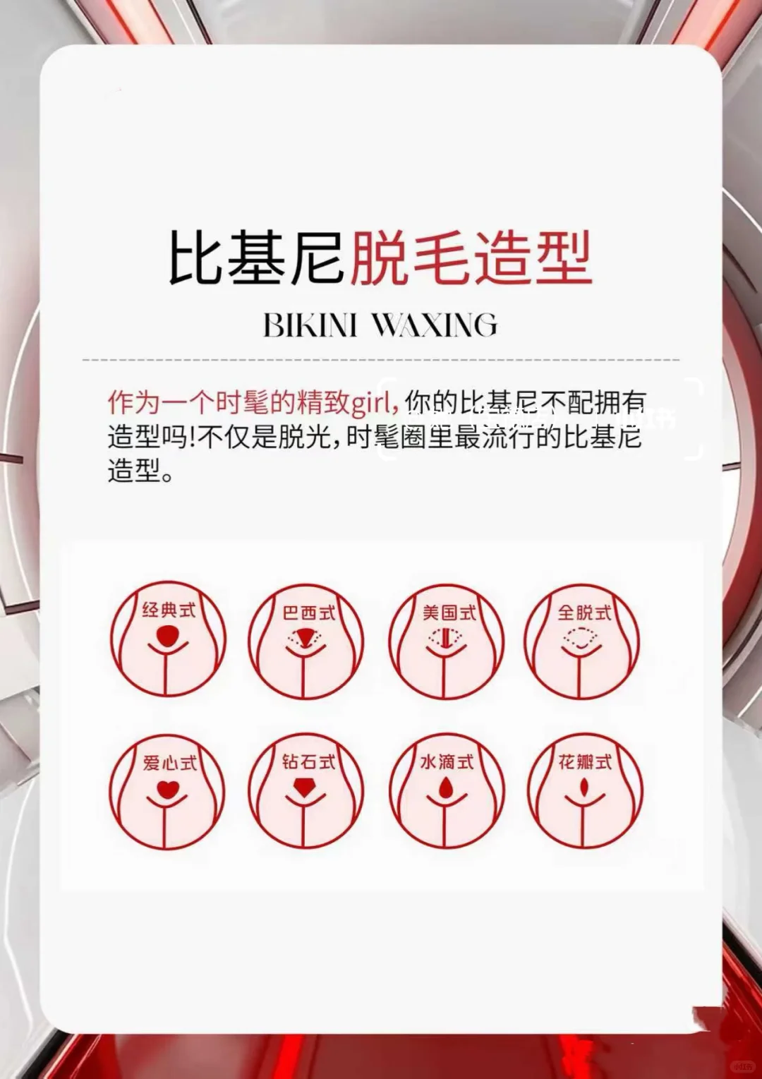 姐妹们!是不是对着比基尼除毛的造型列表犯选择困难症?先别慌,精致第一步得从「健康」说起~👀\n私密处毛毛长期闷在温热潮湿的环境里,一旦太旺盛真的超容易藏污纳垢,悄悄滋生霉菌、滴虫甚至阴虱,小尴尬分分钟找上门!对比过刮毛、蜜蜡各种方法后,真心劝大家冲冰点除毛——性价比直接拉满,不用反复护理,坚持几次就能实现“一劳永逸”,穿泳衣再也不用慌慌张张修形状!\n搞定毛发问题,就到最让人心动的「造型环节」啦!比基尼那“黄金八公分”的区域,选对款式堪比换气质:\n• 爱心形:甜妹专属!自带娇憨感,约会穿小裙子都藏着小心机\n• 经典型:新手闭眼入的安全牌,利落干净不挑人,日常护理超省心\n• 水滴型:温柔挂必备,线条圆润显精致,穿分体泳衣巨加分\n• 花瓣式:浪漫氛围感天花板,边缘灵动又性感,海边拍照超出片\n真的想说,哪有什么“草民和女王”的区别呀~💖 优雅的比基尼造型从不是为了取悦谁,而是女人给自己的精致仪式感——既守护健康,又藏着对生活的小讲究。\n你们最爱哪种造型?或者有除毛疑问的姐妹,评论区直接问!👇\n#比基尼除毛 #冰点脱毛攻略 #精致女孩必备 #VIO造型指南 #夏日变美小技巧 #蜜蜡脱毛 #激光脱毛 #比基尼 #揭阳私密 #私密护理
