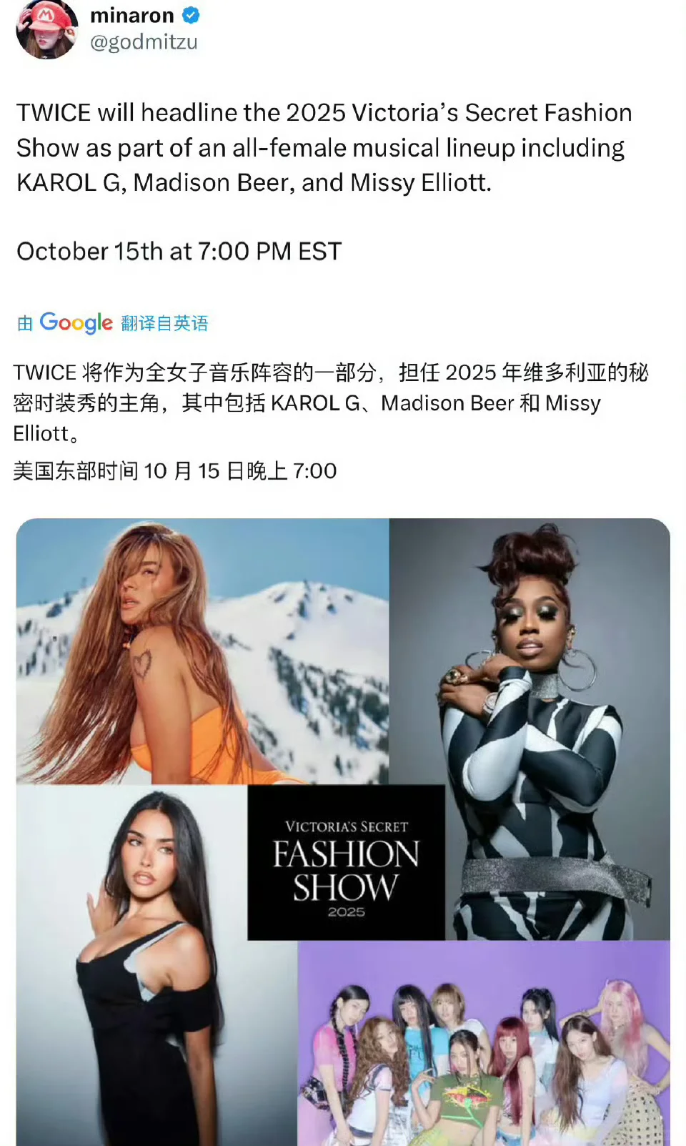 📍 TWICE将担任2025维多利亚的秘密秀表演嘉宾\n⏰10.15\n
