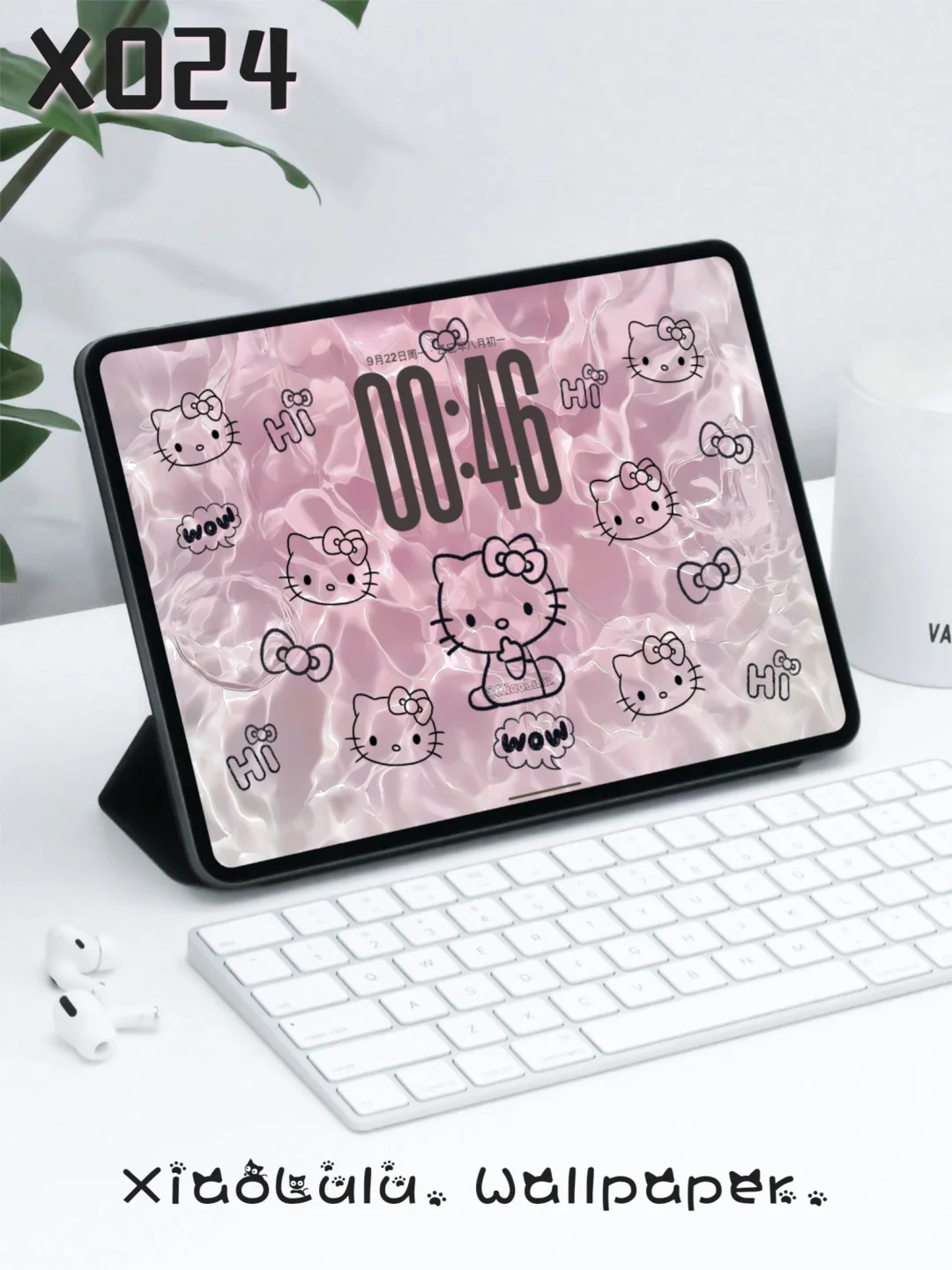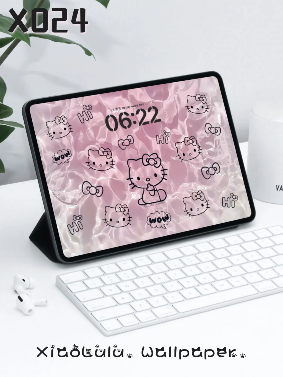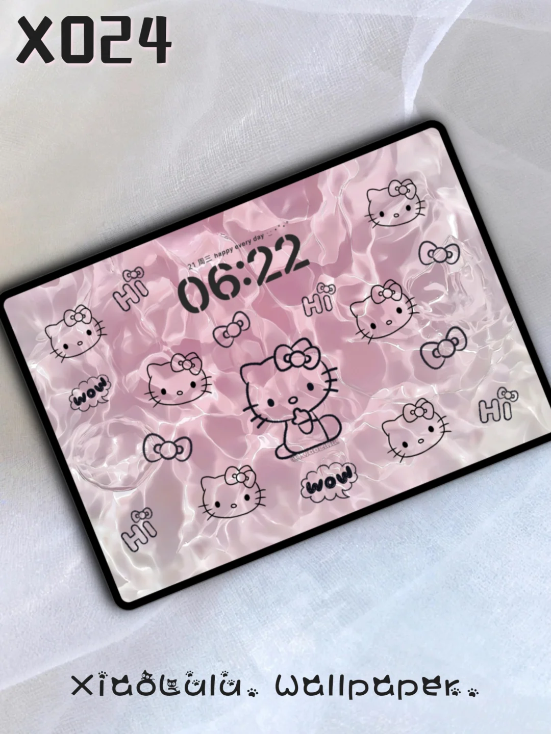 X024丨平板壁纸丨水波纹凯蒂猫丨粉色水波纹