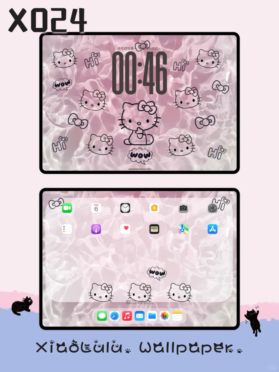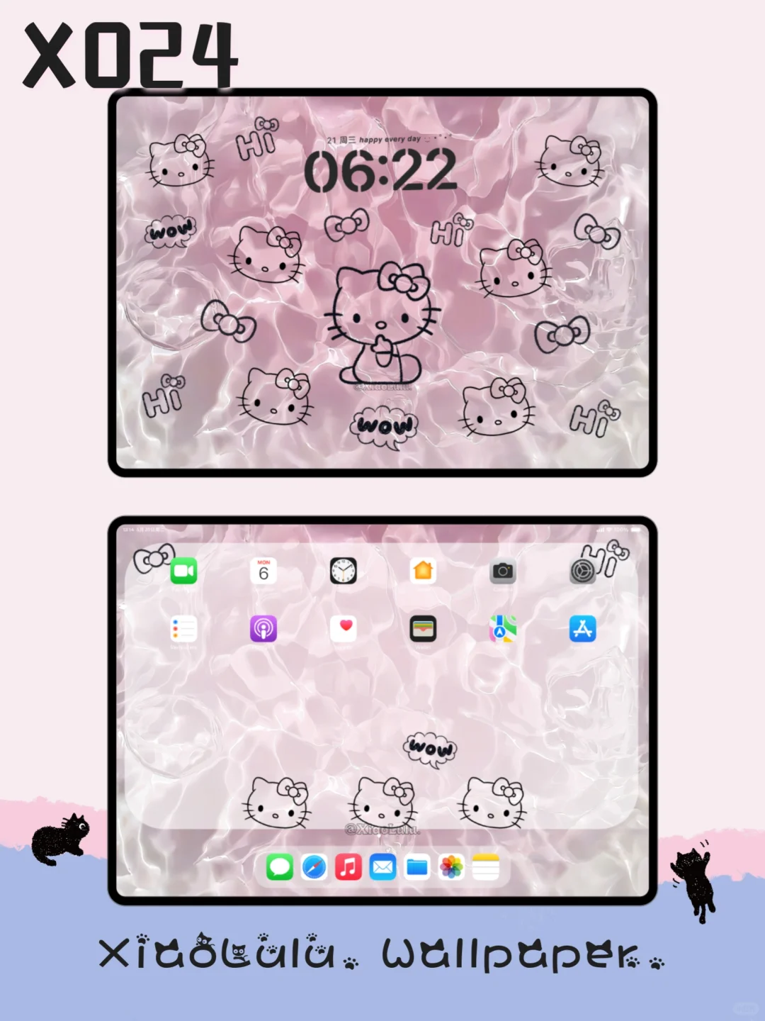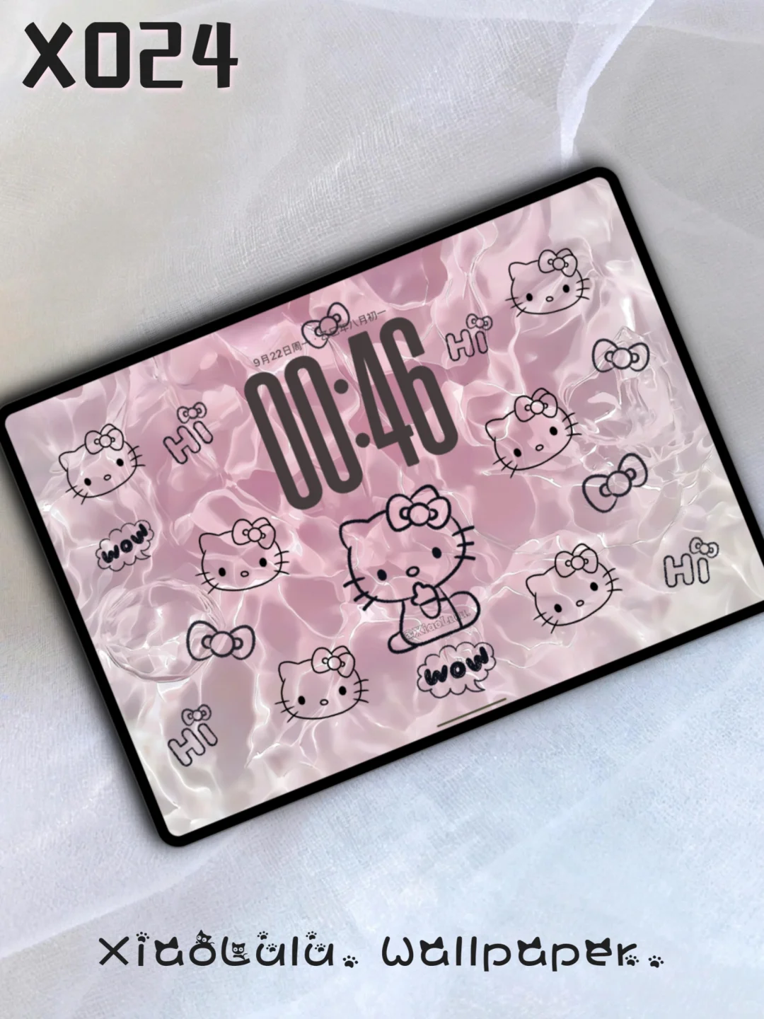 X024丨平板壁纸丨水波纹凯蒂猫丨粉色水波纹