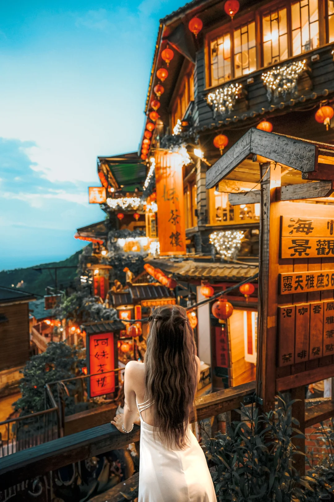 台北九份的美景人人皆知,\n但不要在日間去了!燈籠都會在黃昏時段才會開,\n想要拍到神隱少女在酒屋的電影感,\n建議在黃昏時段到夜間時間拍攝。\n先在地圖找到「阿妹茶樓」,\n因為九份老街是往山上走的,\n沿着街往上走容易走錯,每一條街都一樣的,\n看地圖較好。\n中途有一個小平台,絕對是看到日落🌅\n當你發現小平台後,就不要再往上走,\n有一條往下走的樓梯,慢慢走就會看到了,\n也看到人群都已經在拍照\n所以在日落時候去吧!\n不會太曬也不會沒日照。\n順帶一提,宮崎駿訪問中提及到\n神隱少女不是在九份取景的,只是剛好相似\n#九份 #九份老街 #台湾九份老街 #台北 #阿妹茶樓 #台灣 #旅行 #台北日常 #台北景點 #神隱少女 #宫崎骏千与千寻 #千与千寻